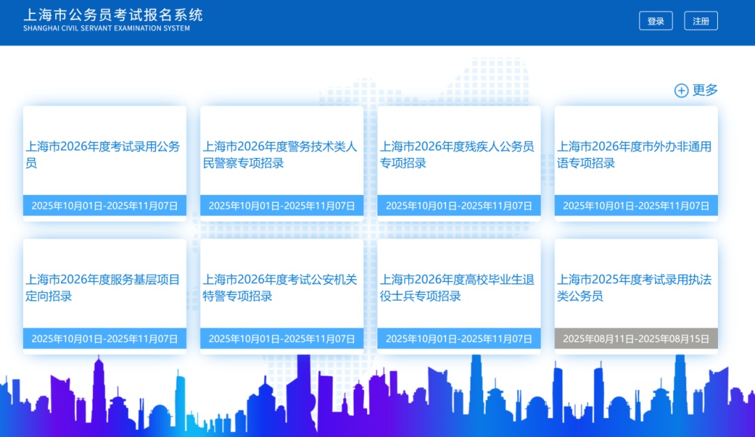 据市公务员局介绍,符合报考条件的考生可在2025年11月1日0:00至11月7日12:00期间通过“上海市2026年度考试录用公务员专题网站”(https://bm.shacs.gov.cn/zlxt)进行网上报名,笔试时间为2025年12月7日。