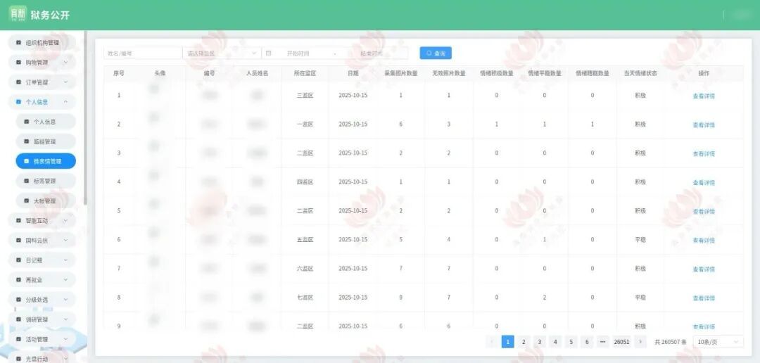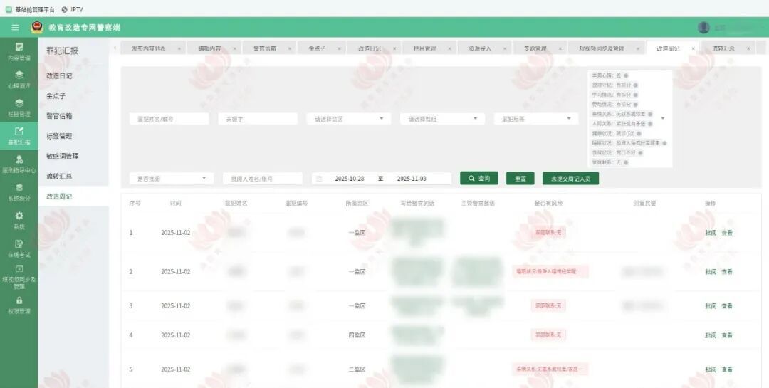 在监管安全方面,平台创设 “行为数据 + 文本分析” 双重监测机制,表情识别系统异常识别准确率达77%,助力民警成功化解多起潜在风险。实时采集罪犯学习轨迹、浏览记录等数据,智能分析异常行为,提示民警及时进行谈话疏导。