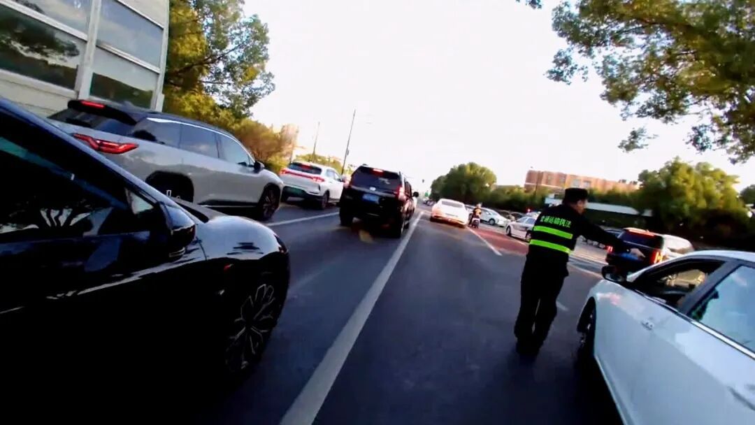 “停车!停车!”即便现场执法人员再三要求该司机停车,该司机还是不顾现场执法人员的指挥,快速驶离路口,险象环生。