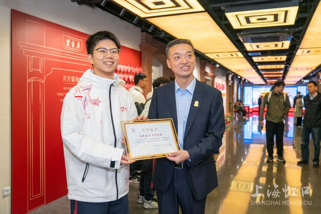 成为中共四大纪念馆今年第100万名观众,郭祺宇很是激动:“中共四大精神与我的‘澳门记忆’紧密相连。纪念馆曾向濠江中学赠送编号75的国旗,而濠江中学升起澳门第一面国旗的故事,正是爱国爱澳精神的生动体现。这份‘国旗情缘’,让我体会到历史与当下、上海与澳门之间深厚的情感联结。”他还表示,从早期共产党人的坚定信仰,到当代青年在进博会等舞台上的志愿服务,是一种跨越百年的精神接力。作为国际关系专业的学生,他也希望纪念馆进一步面向港澳台及海外青年开发研学项目,用中国共产党的故事促进跨文化共鸣,让红色基因在新时代焕发光芒。