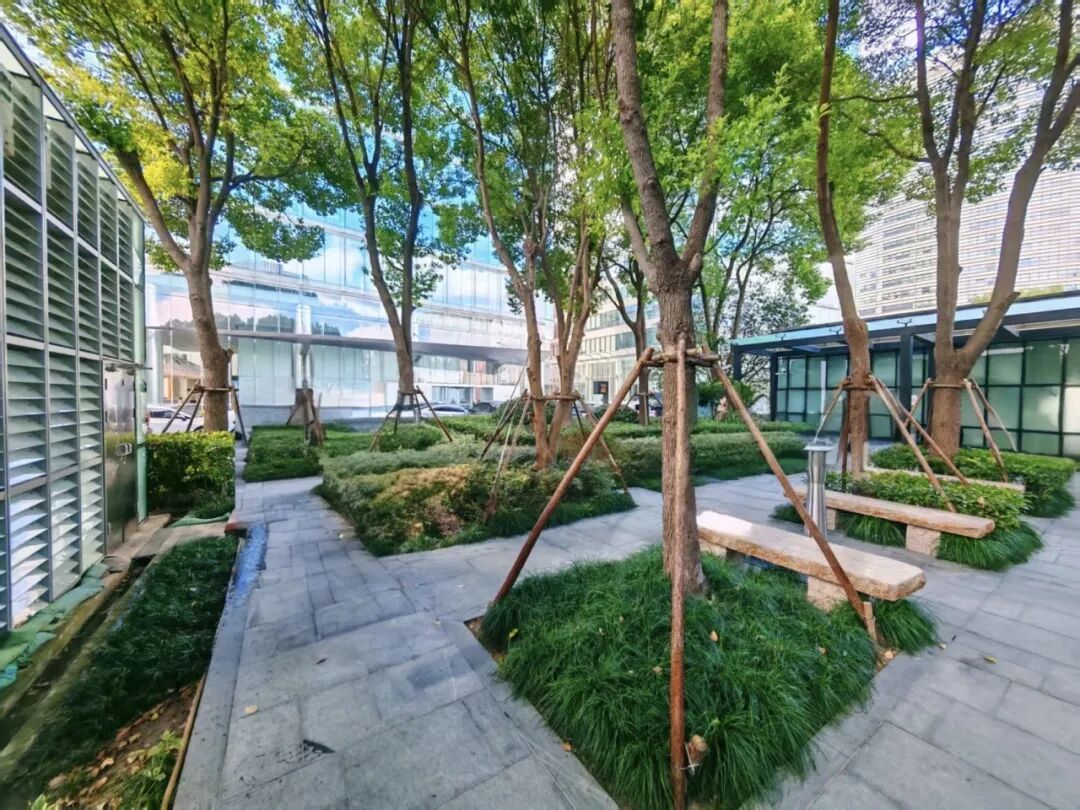施工过程中,项目在承重、防水、排水等关键环节做足保障:楼板承重设计强度达普通楼板的10倍,并采用拉震结构均匀分摊重量;同时通过固根抗风设计,确保高大乔木稳定生长。植物配置上,精选大乔木、大灌木、藤本植物等多样品种,经合理搭配与疏密布局,实现“四季有花、叶色随季相变化”的景观目标。
