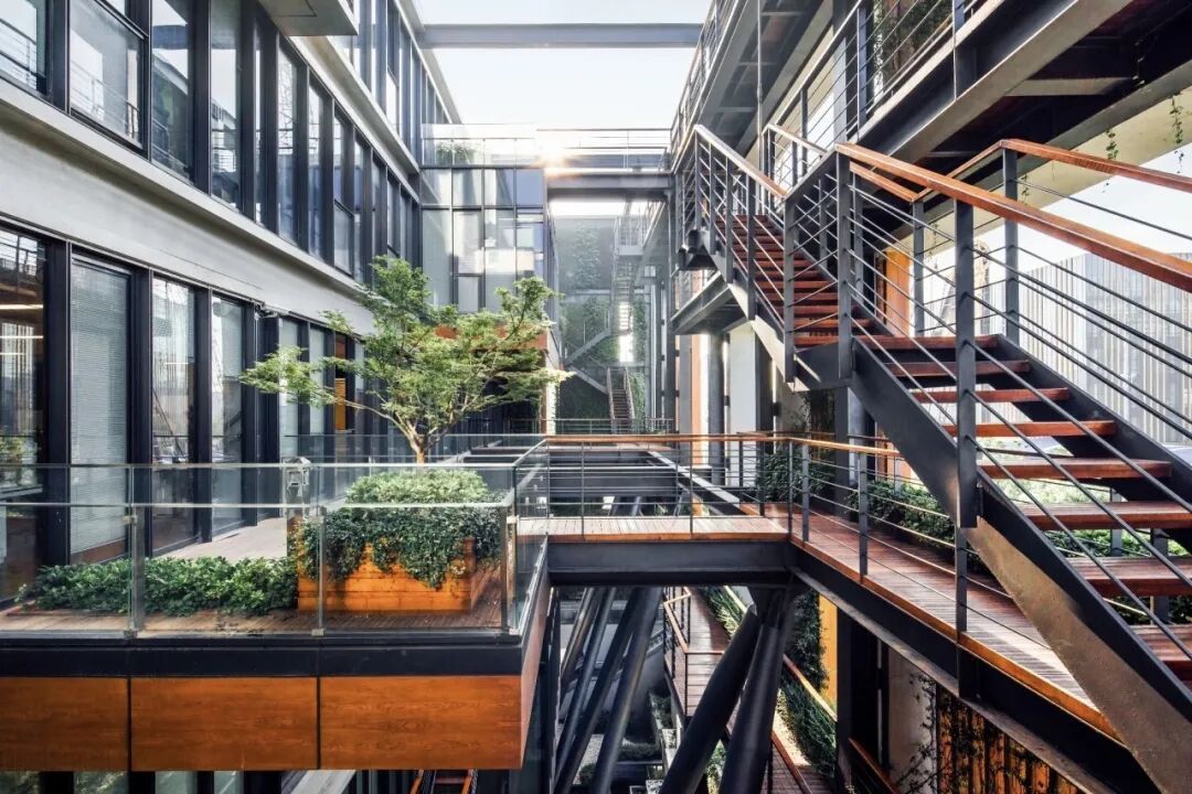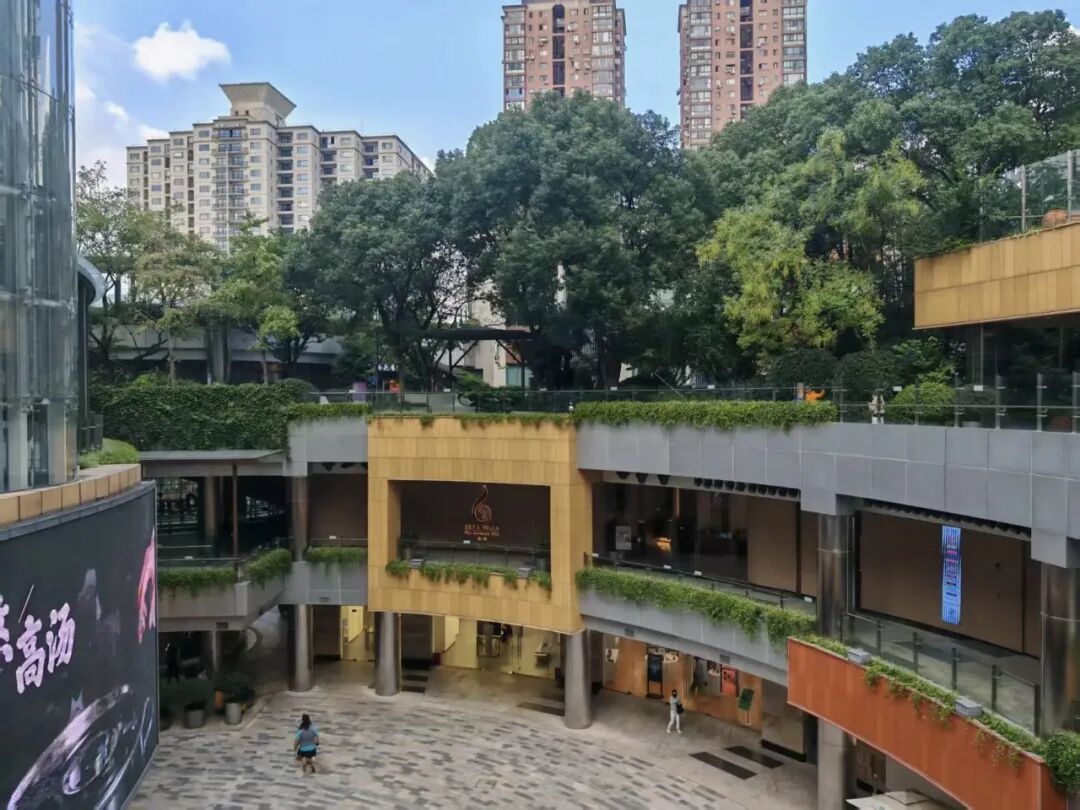 项目创新利用建筑屋顶空间,大幅提升城市绿量,有效改善区域生态环境,为周边居民与办公人员打造了一处可休闲、可放松的绿色休憩空间。设计层面,项目融合现代景观设计理念与生态技术,采用立体造园手法,让阶梯型花园遍布商场各个角落,绿植、水景与空中连廊巧妙呼应,营造出独具特色的景观体验。
