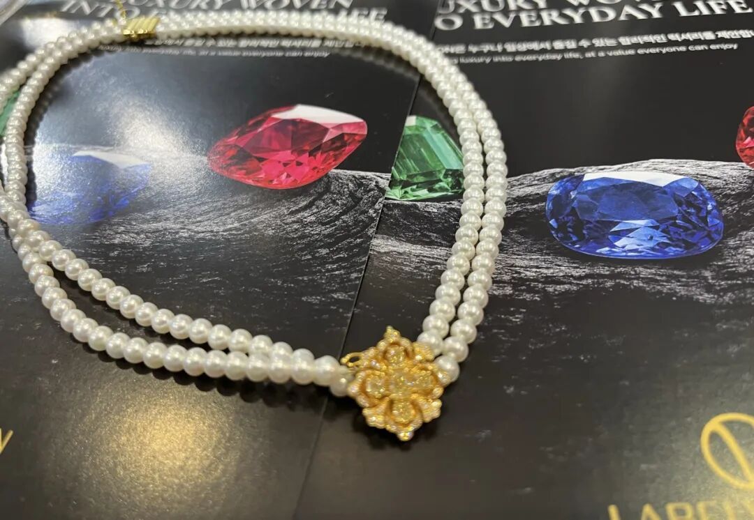 今年,丽宝迩首次独立参加进博会,携旗下品牌Label Vmoon多款新品和产品亮相。其中,“ 坠入人间的格桑仙子”是丽宝迩的首发新品,具有“一链三戴”的特点。双层珍珠链与中间的黄钻吊坠结合,华丽又精致;日常佩戴可拆下黄钻吊坠,使其变成一条优雅纯粹的珍珠项链,经典百搭;取下黄钻吊坠,亦可搭配其他单品项链,瞬间拥有全新生命力。该项链采用独特的“上下扣”设计,吊坠上下均有接口,可连接原配珍珠链,由佩戴者发挥巧思,打造独一无二的专属款式。
