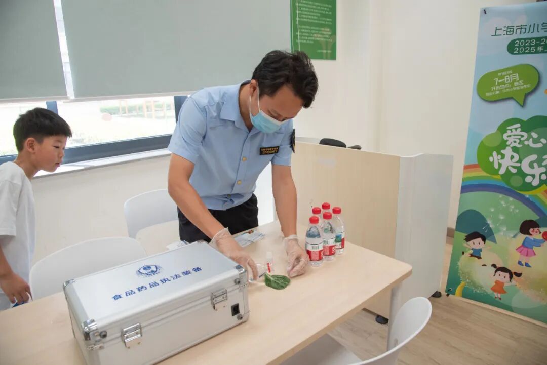 在马陆镇办班点,嘉定新城市场所监管工作人员结合暑托班学生的年龄特征,从日常生活入手,通过生动有趣的讲解和现场互动等方式,为孩子们带来了“食品安全小课堂”“消费安全小课堂”“安全乘梯小课堂”“安全用药小课堂”等一系列轻松愉快的科普课程,将“安全意识”融入暑托班的每一个环节。