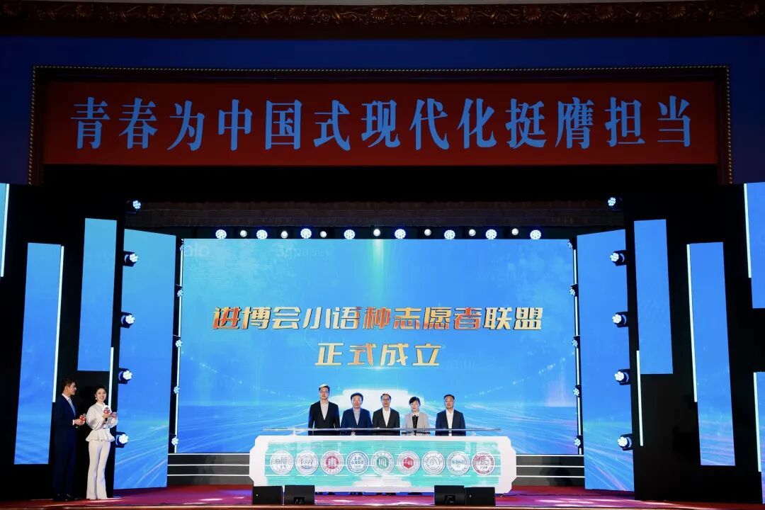 10月29日,第八届中国国际进口博览会志愿者上岗宣誓仪式暨志愿者临时党、团组织成立仪式在上海展览中心友谊会堂举行。“小叶子”们庄严宣誓,志在以青春之姿、奉献之心为祖国挺膺担当。