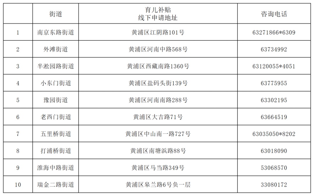 黄浦区的居民线下申请可到婴幼儿户籍所在地街道办事处现场办理。