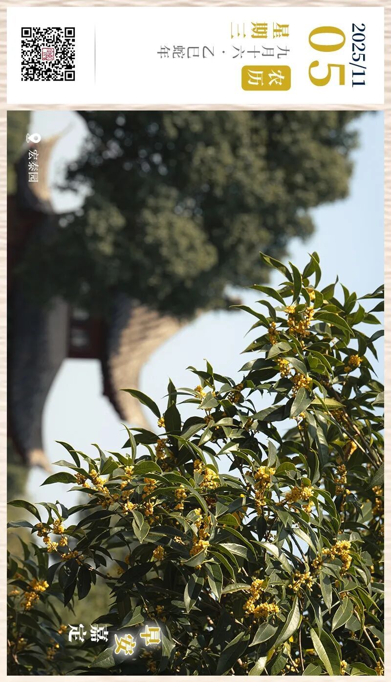 晨光轻抚亭台楼阁,唤醒了满园桂香。簇簇金黄缀于枝头,风过时,檐角雕梁皆浸透温柔。早安!愿你的一天也如这晨光般,安宁而美好。