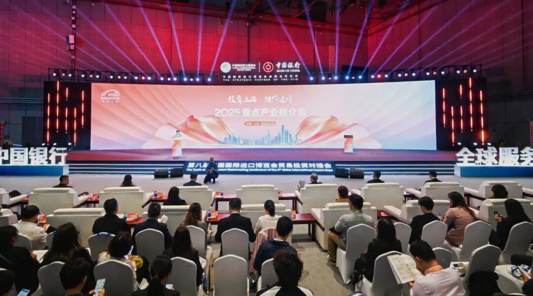 今日(11月6日)下午,2025“投资上海·相约进博”重点产业推介会在国家会展中心举行。市政府副秘书长张英出席并致辞,市投促办(市经济信息化委)副主任蒲亚鹏出席并作主题推介。中电建、中智股份、大唐等10余家央企,三菱电机、科思创、诺华集团等外资企业,美迪科、瞰景科技、时的科技等民营企业,以及中国银行、安永等上海全球招商合作伙伴代表共近200人参会。