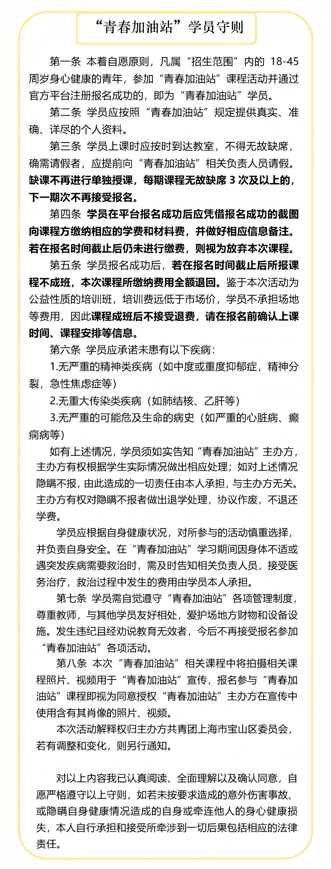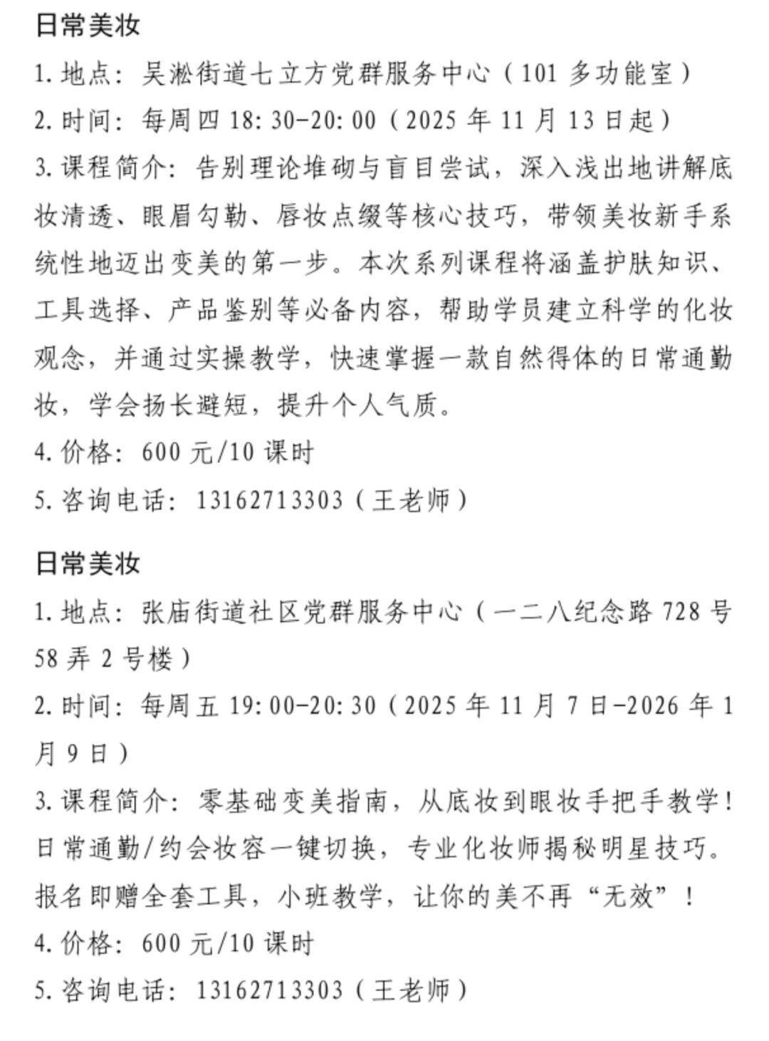 本次秋季班,近50门多彩课程如彩虹般绚烂铺开呈现,深入覆盖各个党群服务中心。在这里,艺术、技能与文化交相辉映,为年轻人打造了一方既能汲取知识、又能结识同好的温暖天地。随着文化艺术、志愿服务等多元社群在此扎根生长、回馈社区,带动“青春小店”不断涌现,处处洋溢着蓬勃的青春活力。