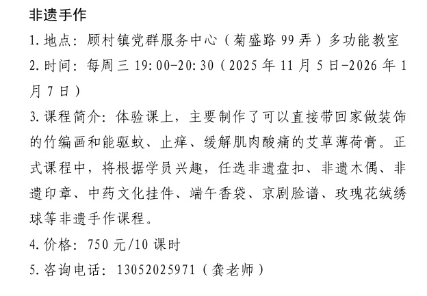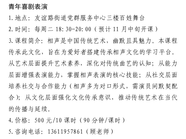 课程从沪语基础发音、沪语歌曲、沪剧唱腔和表演艺术等方面展开,逐步引导学员深入理解沪剧这一本土艺术形式的内涵与魅力。