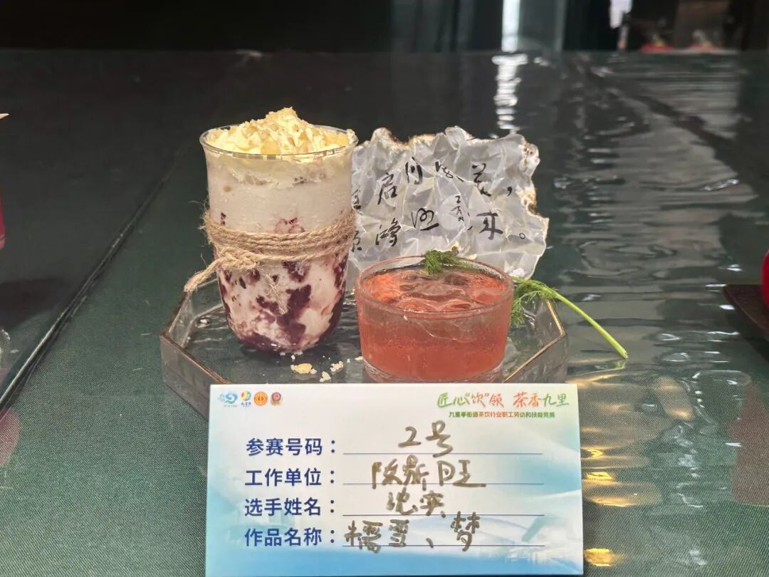 决赛中,12名选手有条不紊地在操作台前准备着调配饮品的食材与工具,从茶底甄选、配料搭配到造型设计,每一步都暗藏巧思。“果茶主打清新爽口,奶茶主打丝滑绵密,口感的反差刚好可以调和。我还在奶茶里加了一些秋冬非常受欢迎的蜜薯,借鉴了法式风味的做法。”来自上海广禧食品科技有限公司的参赛选手张世洁表示,“此次竞赛提供了一个很好的交流平台,通过与其他选手切磋,我收获了很多新的创意灵感。广禧也将继续秉持匠心精神,为消费者带来更优质的茶饮体验。”