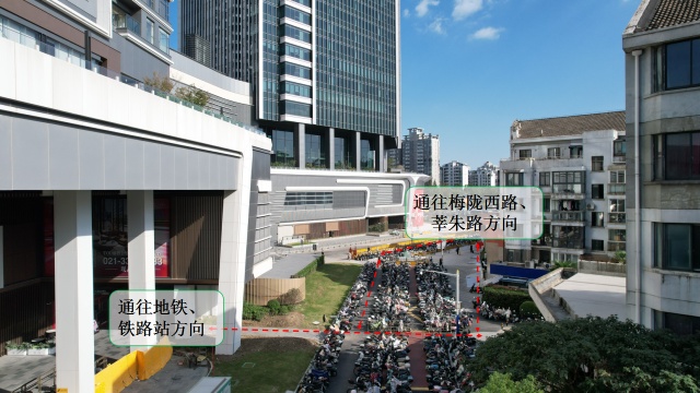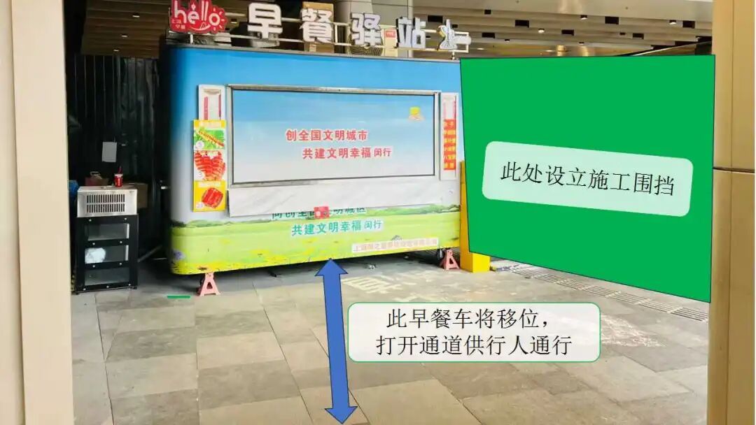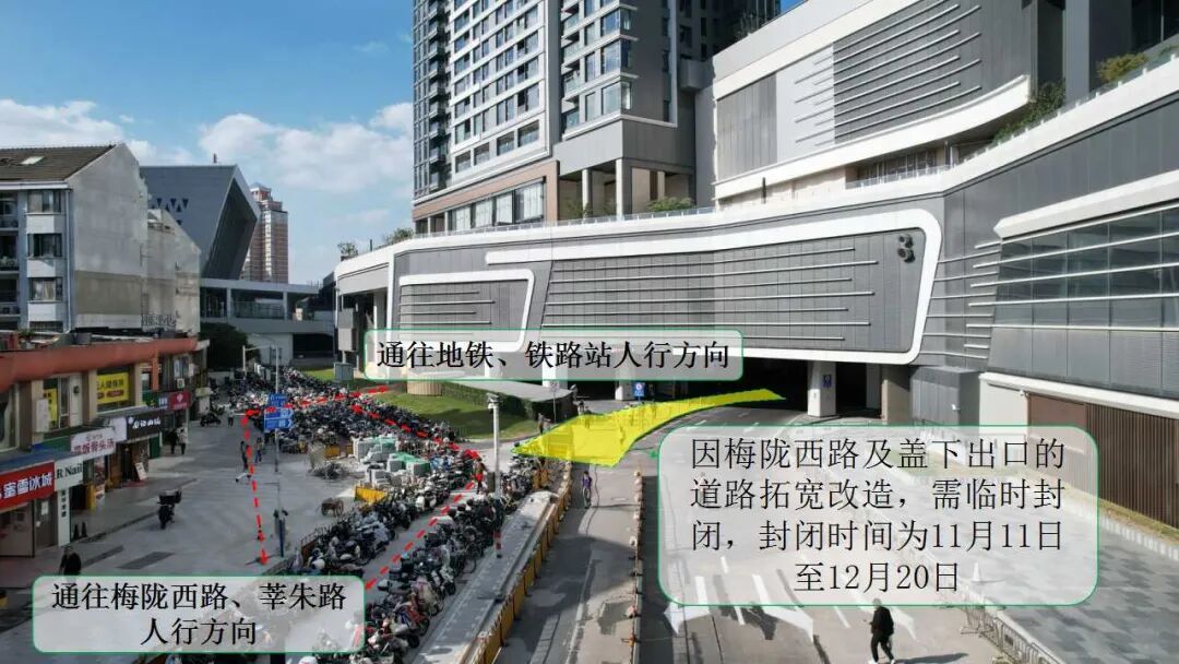 从梅陇西路、莘朱路至地铁站(双向)的行人,可绕道移步至地铁南1口扶梯方向口通行至地铁站内。