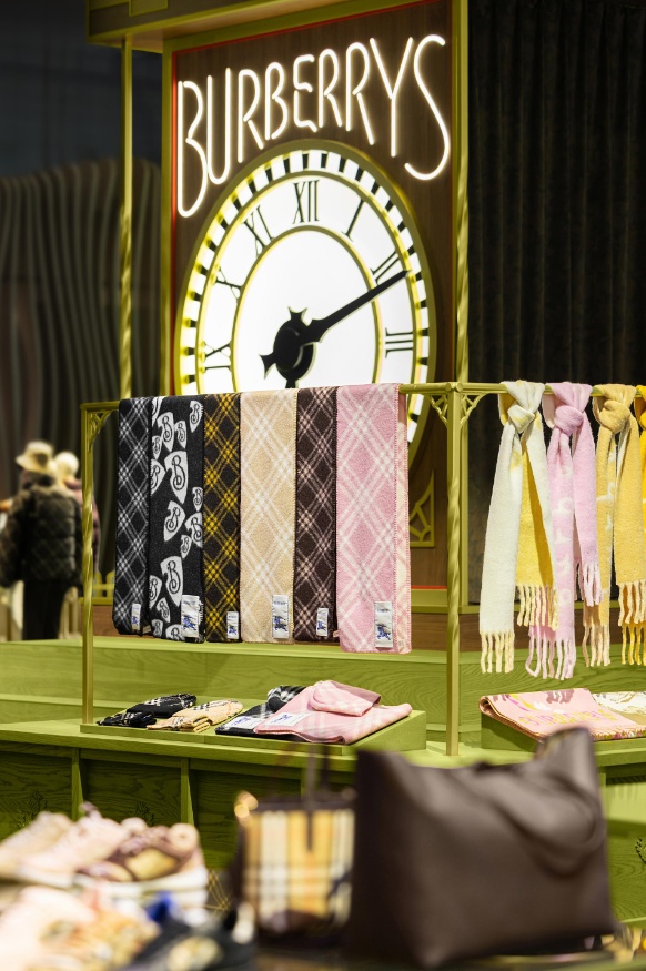 “博柏利时钟”不仅是博柏利品牌传承的瞩目象征,也是2025外套系列广告大片的核心视觉元素。展台中的这座复刻时钟置于拱形铁架、复古售票亭和报亭之间,唤起人们对时间、旅行与永恒英伦格调的浪漫遐想,让这场特别的“归途之旅”在上海启程。
