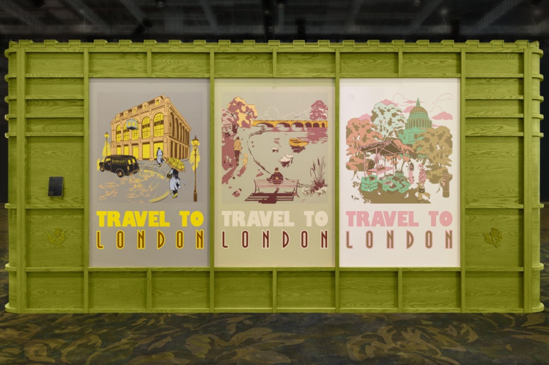 为了进一步提升展区的互动体验,博柏利还推出AR互动装置,可以将静态旅行海报转化为动态数字场景。访客只需扫描海报上的二维码即可解锁全新体验,精妙的动画效果加强了每件艺术品的叙事层次和视觉魅力。