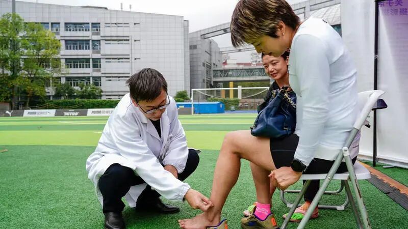 此外,体验区还围绕跑者常见的肌肉拉伤、关节疼痛等问题,开展体外冲击波治疗、肌内效贴布的正确使用、足底平衡测试等项目,让跑者掌握日常自我防护技能。