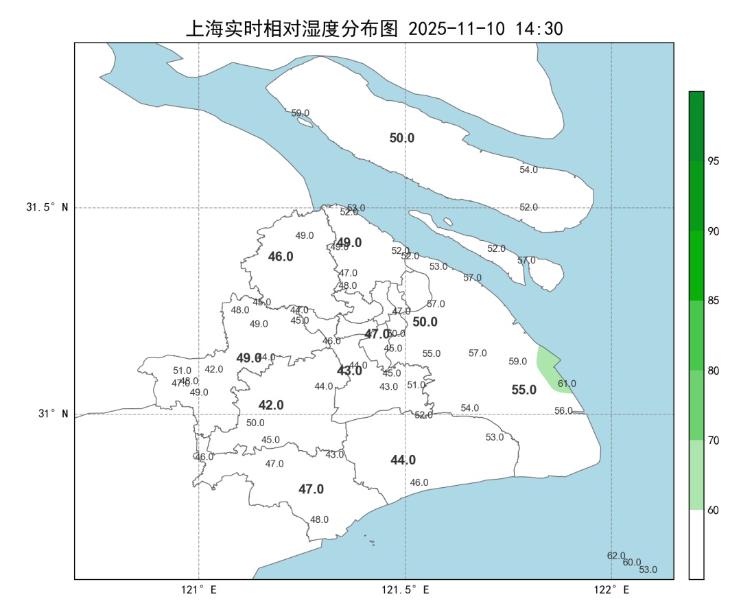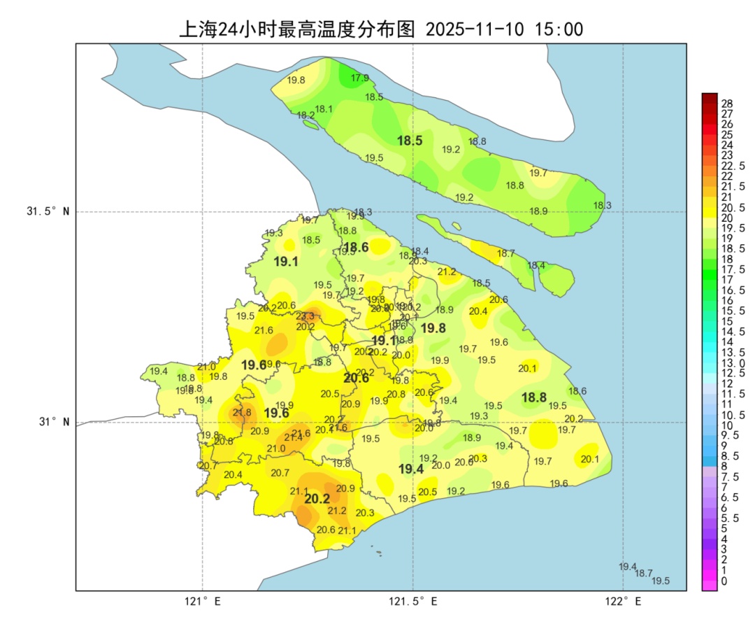 许久未见的阳光今天终于重返申城,全市最高气温多在18-21℃之间,市区徐家汇站19.1℃。风力偏大,湿度低,秋燥明显。