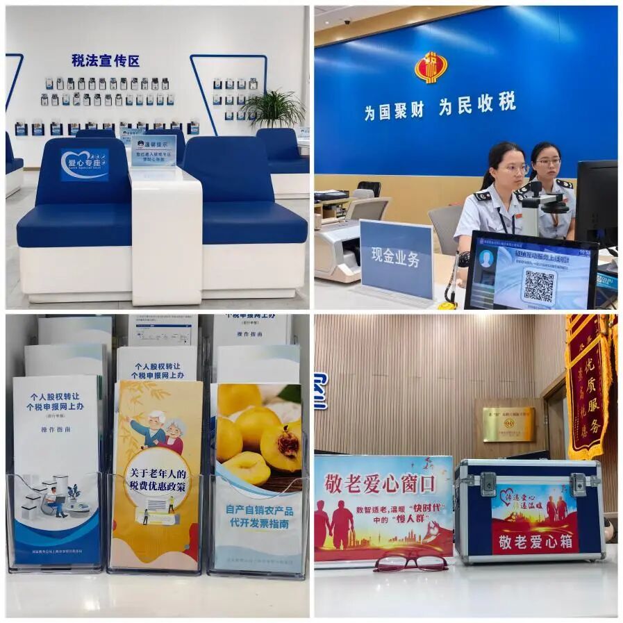 细节关怀、优化体验:通过设置现金收付专窗,配备老花镜、放大镜等便民工具,制作字号醒目、排版清晰的“大字版”宣传资料,并适时提供方言服务等多项举措,为老年人消除沟通障碍,营造亲切、便捷的办税环境。