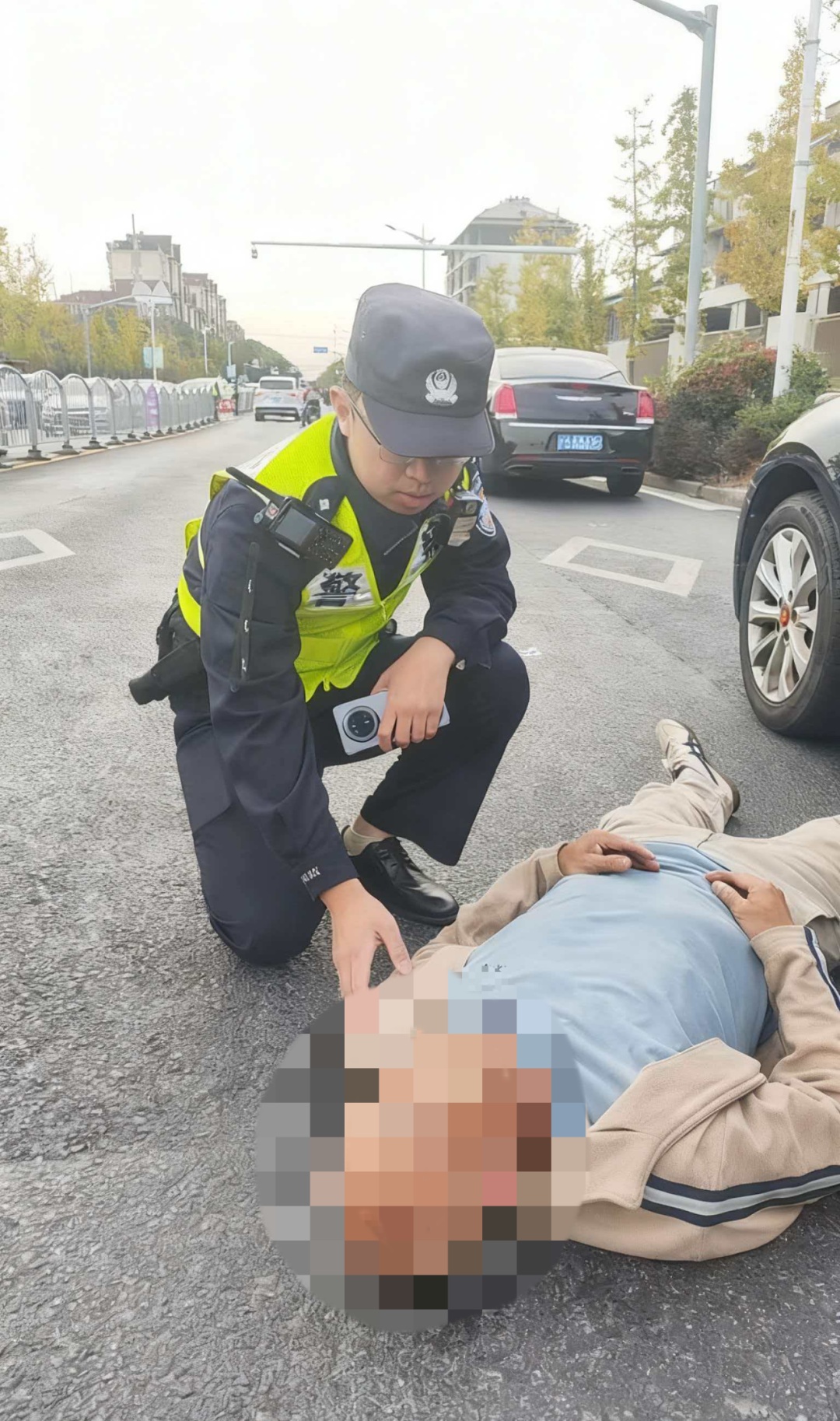 事发当时,松江公安分局洞泾派出所民警在执行护校任务,突然发现学校对面有一中年男子倒在地上。民警第一时间上前查看,发现该男子后脑着地出血,意识模糊,无法对话。民警立刻将情况上报并呼叫120,同时疏导周边交通,开辟救援通道。