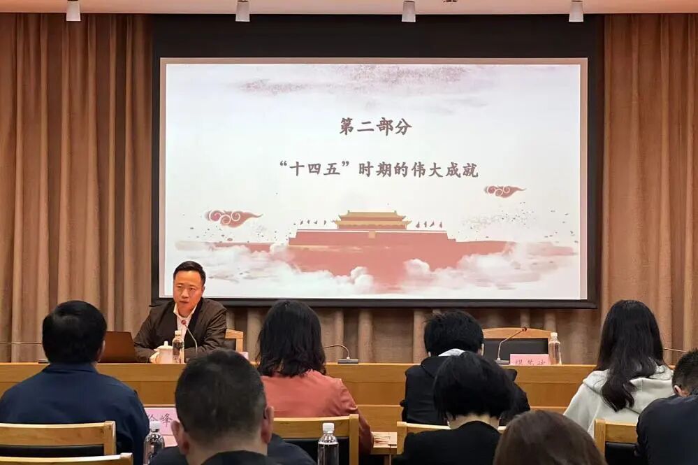 会议邀请上海市党的二十届四中全会精神宣讲团成员、上海社科院城市与人口发展研究所研究员邓智团作专题辅导。现场,邓智团围绕“重大意义、伟大成就、历史方位、形势变化、指导思想、重点任务”6个方面,对党的二十届四中全会精神作了深入阐释和系统解读,为基层一线开展宣传工作树标、打样。