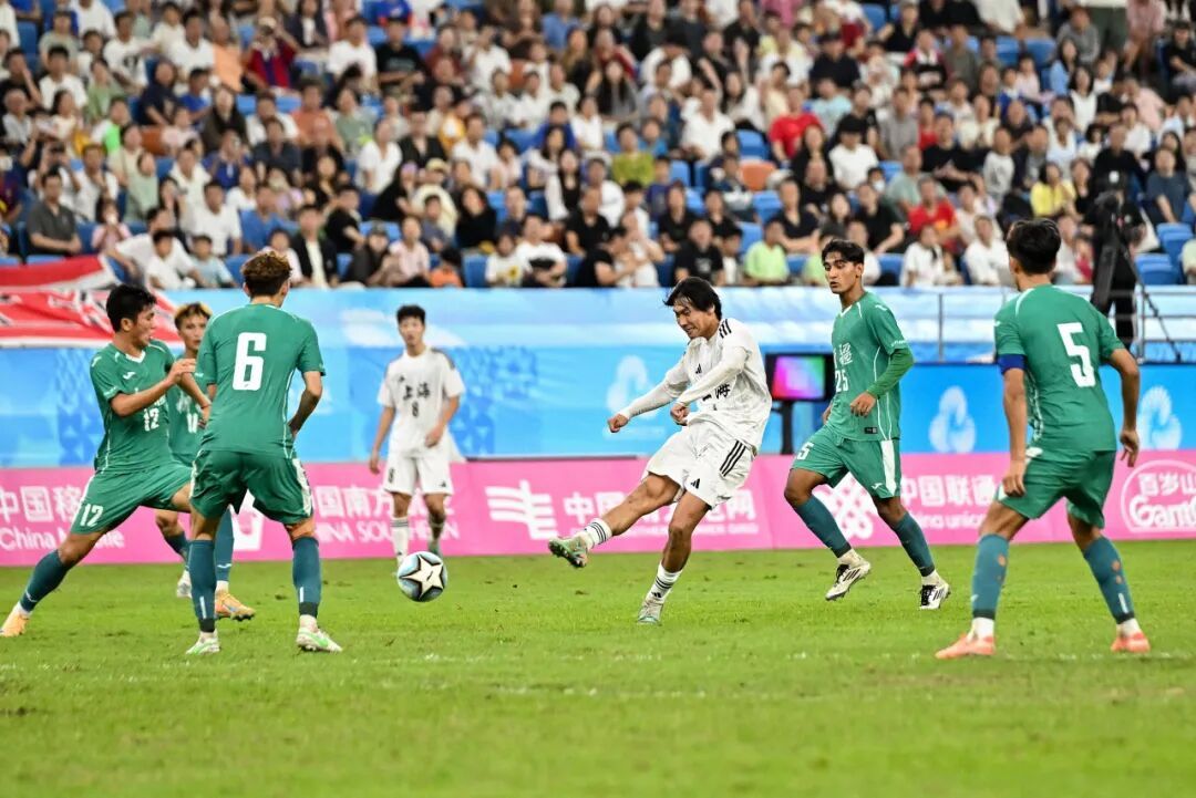 四分之一决赛上海U20男足在加时赛3比2险胜新疆U20男足,上海队球员李新翔加时赛破门瞬间