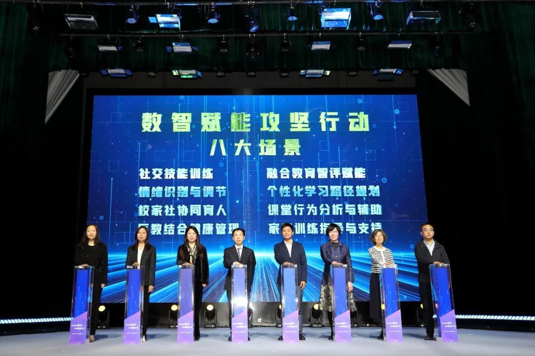 活动现场举行了“数智赋能特殊教育攻坚行动”启动仪式,将聚焦社交技能训练、情绪识别与调节、校家社协同育人、医教结合健康管理、融合教育智评赋能、个性化学习路径规划、课堂行为分析与辅助、家庭训练指导与支持等八大场景开展探索。