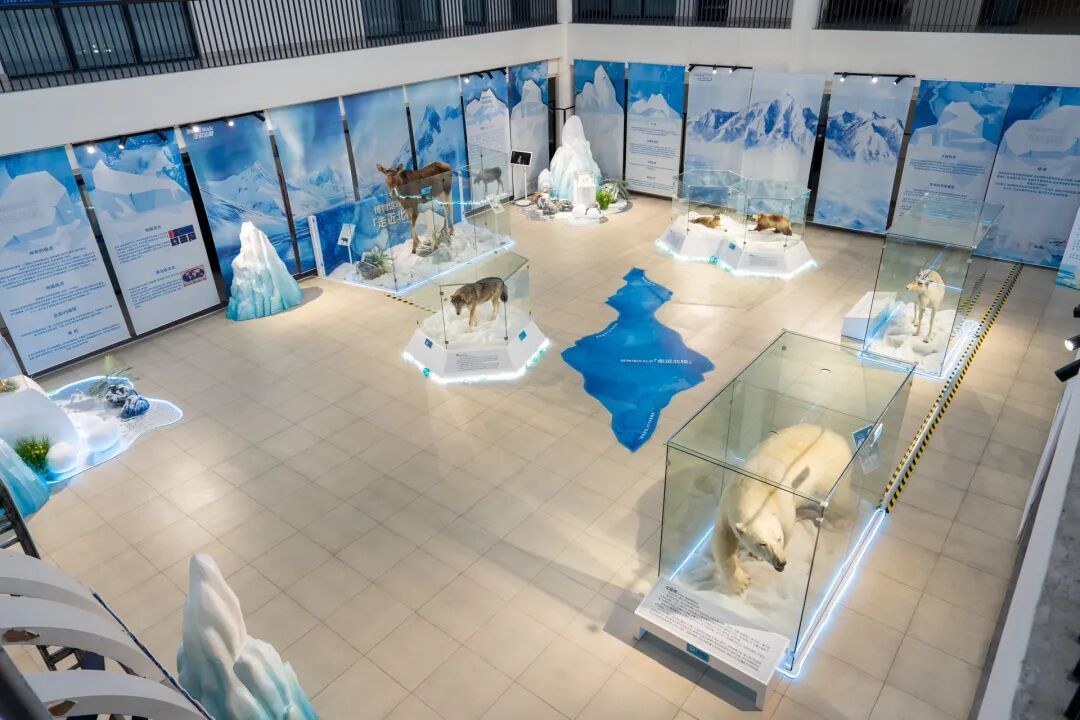 “驯鹿毛发的颜色会随着四季变化。请猜一猜,驯鹿在冬天是什么颜色的,在夏天又是什么颜色。”步入展厅,高一学生朱瑾妍主动向第一教育小编作起了科普,这些知识都是她在开展前自主学习的,而能够在校园里与专业场馆展品“面对面”,让她感言“这是非常难得的学习机会”。本次展览除了带来栩栩如生的动物标本,还向学生科普了“极地如何形成”“我国极地科考历程”“青少年如何守护冰川”等知识。