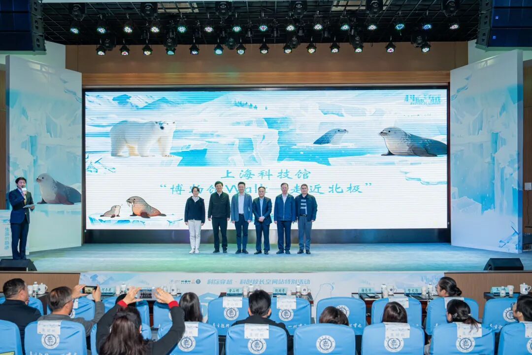 强壮威猛的北极熊、双目炯炯有神的狼、性情温顺的驯鹿……这些“神奇动物”一起出现在校园里,会给学生带来怎样的体验? 11月12日,上海市嘉定区第一中学校园里的嘉懿创新思维广场化身“冰雪世界”,8件北极动物标本从自然博物馆库房“走出”,来到学生身边。由上海科技馆、上海科普教育发展基金会主办的“科际穿越·科创校长空间站”特别活动在此举行。本次活动以“生命的奇迹”为主题,通过特色展览、前沿讲座、深度对谈,为学生打开学习探究“新视界”。 全国政协委员、上海科技馆馆长倪闽景,上海市人大常委会委员、原民进上海市委会专职副主委黄山明,上海市人民政府参事室副主任谢东升,嘉定区副区长丁炯炯,嘉定区教育局局长、嘉定一中党总支书记管文洁,民进嘉定区委主委、嘉定区文旅局局长何冬英,华东师范大学生命科学学院研究员、博士生导师王烁以及嘉定区校园长、教师、学生代表、嘉定民进企业联谊会会员等共约500人参与了活动。