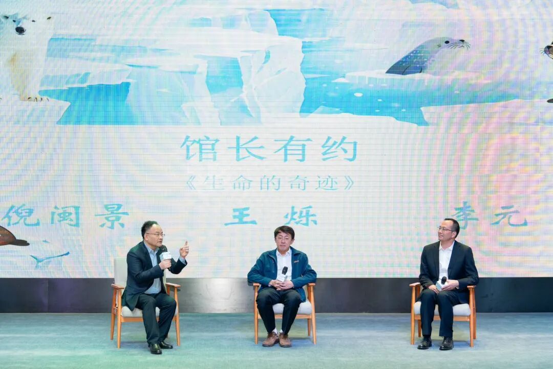 “馆长有约”是当天活动的重要环节。全国政协委员、上海科技馆馆长倪闽景作为特邀主持,与王烁研究员及嘉定区第一中学党总支副书记、校长李元展开了一场跨界对谈,话题从“生命的奇迹”延伸至“人的成长发展”。在李元看来,生命是独特的也是多样的,他鼓励学生尊重生命,包括尊重自己的生命与自身的独特性。王烁对此也有同感,他从自身的成长经历出发,勉励学生“破内卷”,也就是告别同质化竞争,在成长中找寻自己热爱的领域。倪闽景谈到,人的一生都在通过学习“进化”,希望学生养成自主、专注、坚韧的品质,找寻自己生命的独特价值。