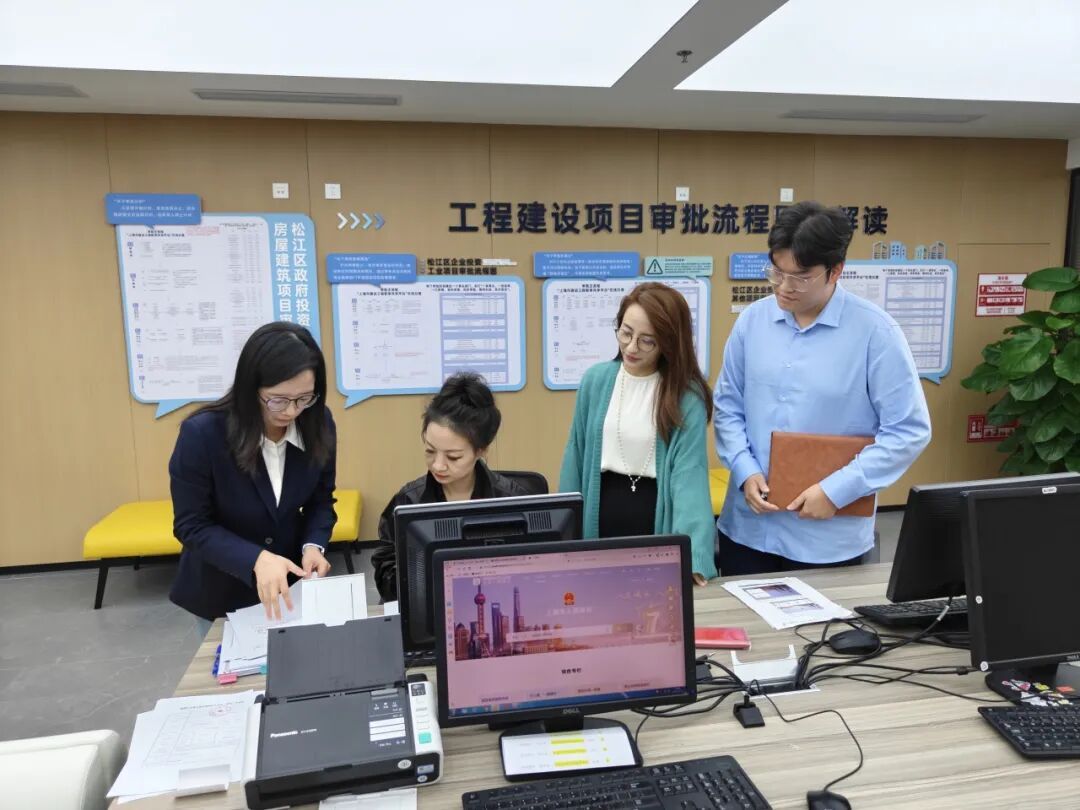 依托这一机制,在服务上海憬之礼品包装有限公司项目过程中,区建管委牵头协调,区绿化市容局、区水务局与车墩镇工业开发有限公司迅速组建服务小组,全程跟踪指导,变被动审批为主动服务。各部门骨干共同为企业提供“一站式”指导,针对项目特点明确审批路径,对非关键要件实施“容缺受理”,确保申请材料在“开工一件事”系统通道内无缝流转、并联审批,最终实现同步核发。