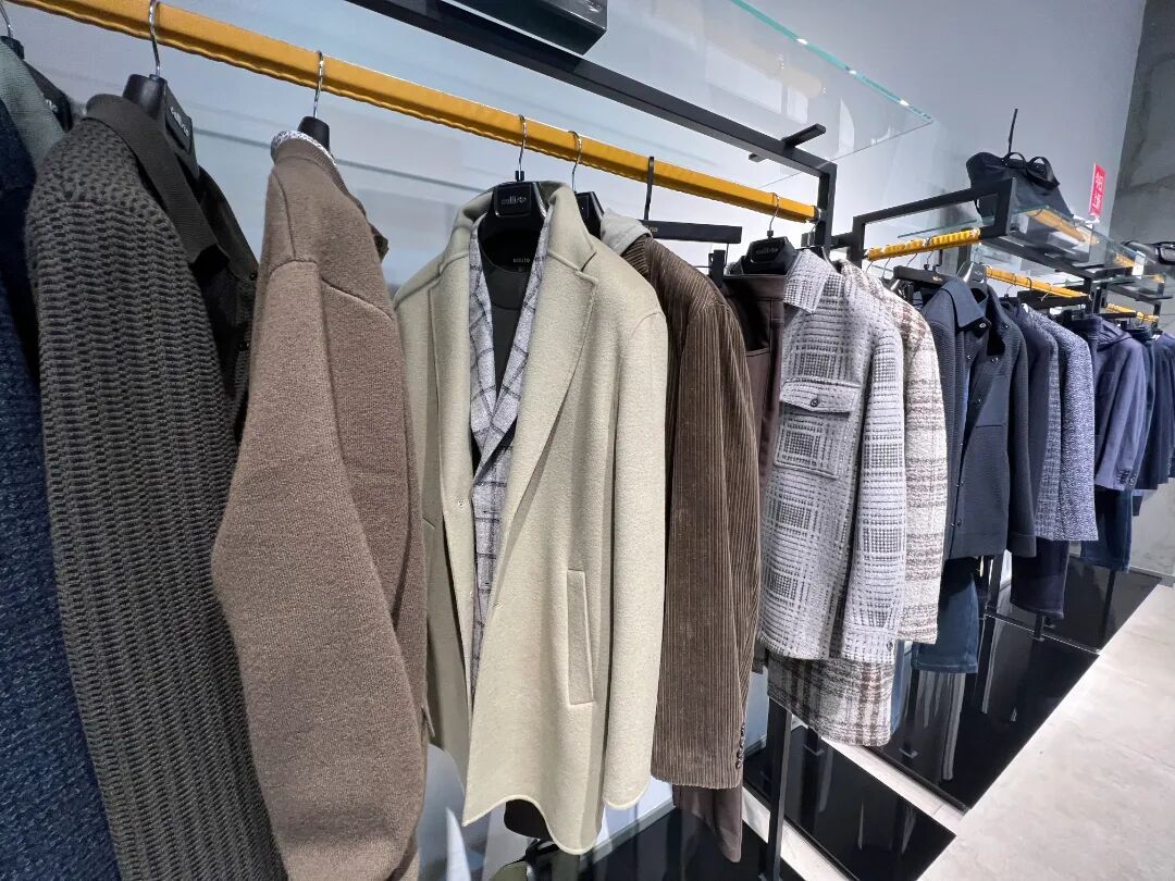 除了价格与品类优势,“零号店”在陈列方式上也做了升级。进门大厅参考精品零售店模式,成套搭配陈列,帮助顾客省去日常穿搭的困扰。无论是商务场合所需的西装风衣组合,还是休闲感的卫衣毛衣搭配,均按色系与风格整合展示,提升了购物体验与整体视觉质感。