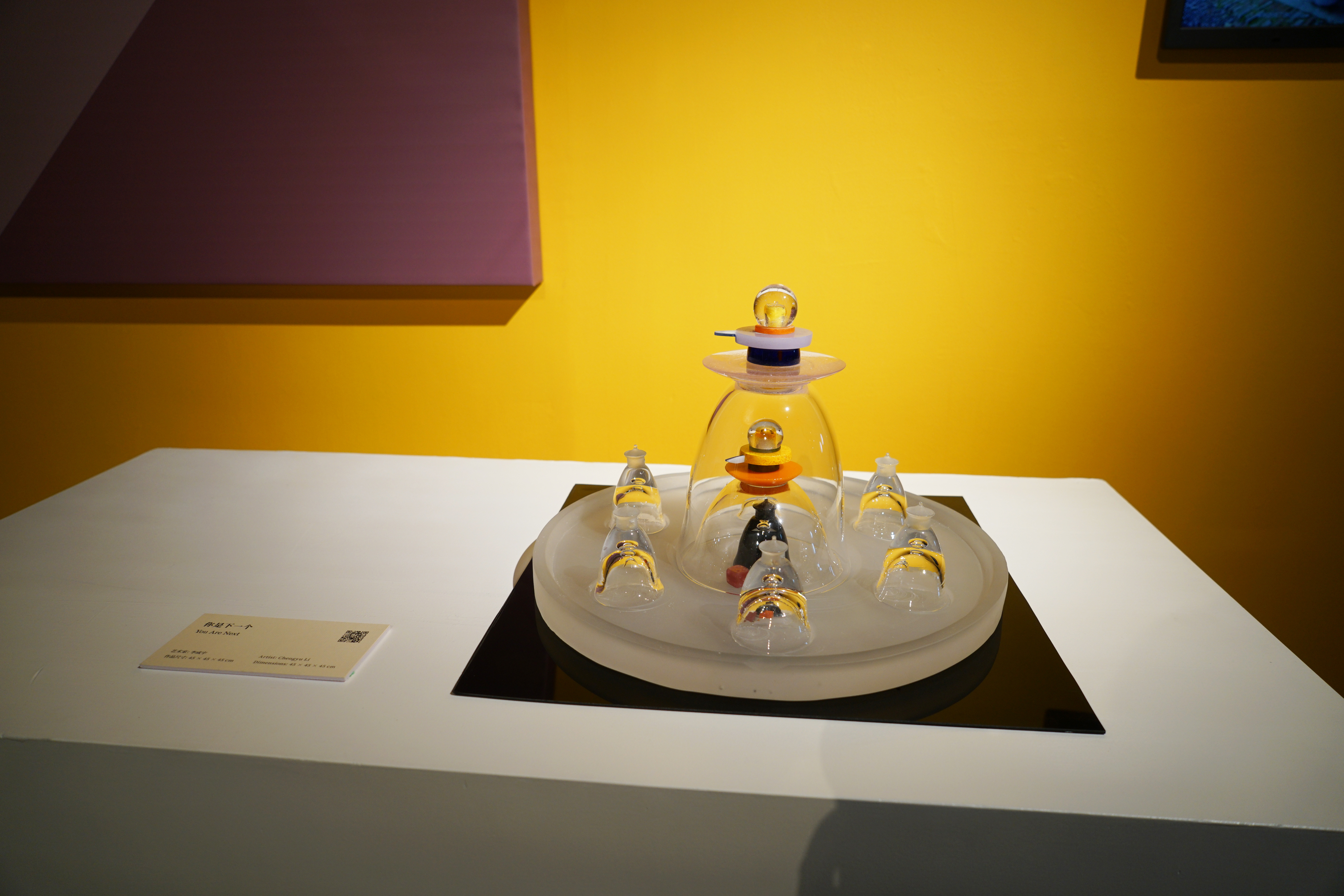 马小生的作品《广场舞——青衣》利用玻璃铸造工艺特点并结合《山海经》异兽来诠释事物的交替变迁,让人们对自然产生更多思考。王韵骁的作品《山的叙事》基于玻璃工艺去探索独特的绘画质感,以作者栖居之地的群山作为意向,通过色彩层次的变换捕捉时间的推移与连贯。玻璃的朦胧质地体现出自然的虚幻,同时也表达了一种宁静与力量的生命景观。