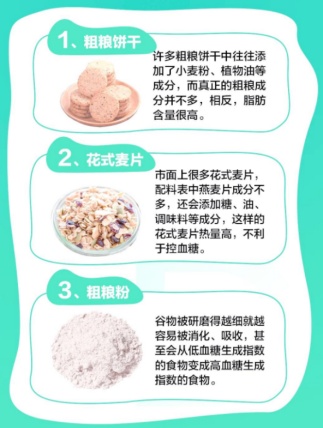 最后需要注意粗粮的烹饪、加工方式,以及一些会使血糖不降反升的“假粗粮”: