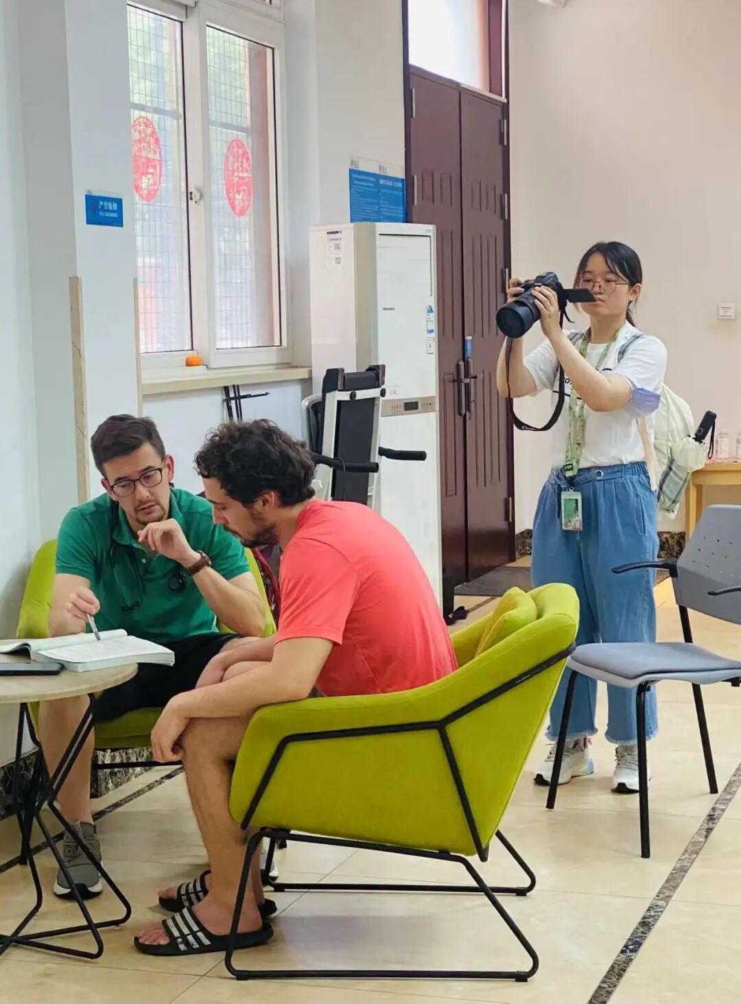 为了自然地走近拍摄对象,同学们以“交朋友”的方式开启这段关系。原本在文化背景与生活经历上难有交集的双方,就这样打破了隔阂。不少同学坦言,这段经历意外地成为了他们英语口语的“强化训练营”。有同学本来想带翻译器去,又觉得太突兀,只好逼自己提前准备、现场硬说。正是在这样真诚的互动中,语言能力悄然提升,人与人之间的理解也渐渐加深。