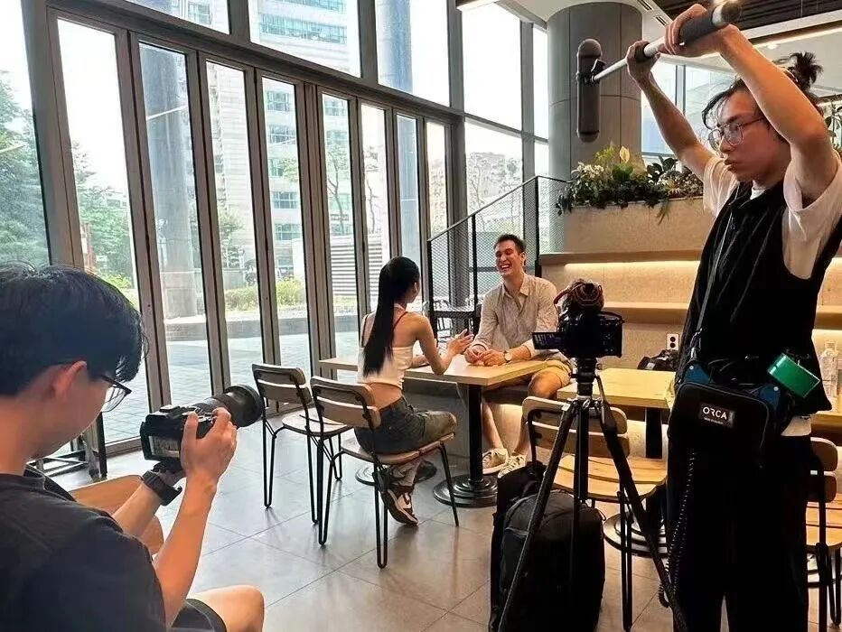 校园里有那么多留学生,该去哪里寻找有趣的人和故事?“北区食堂门口!”几位参与前期“选角”的同学异口同声。那里是留学生最爱的社交据点之一。“我们鼓起勇气主动搭讪,”当时才大二的余楚楚笑着说。大家根据一份只有姓名和国籍的推荐名单分工合作,每人接触大约3名留学生。为了找到最合适的拍摄对象,不少“i人”同学硬是把自己逼成“社牛”,从一个留学生牵线到另一个,线上线下聊生活、聊学习,为正式拍摄打下扎实的基础。