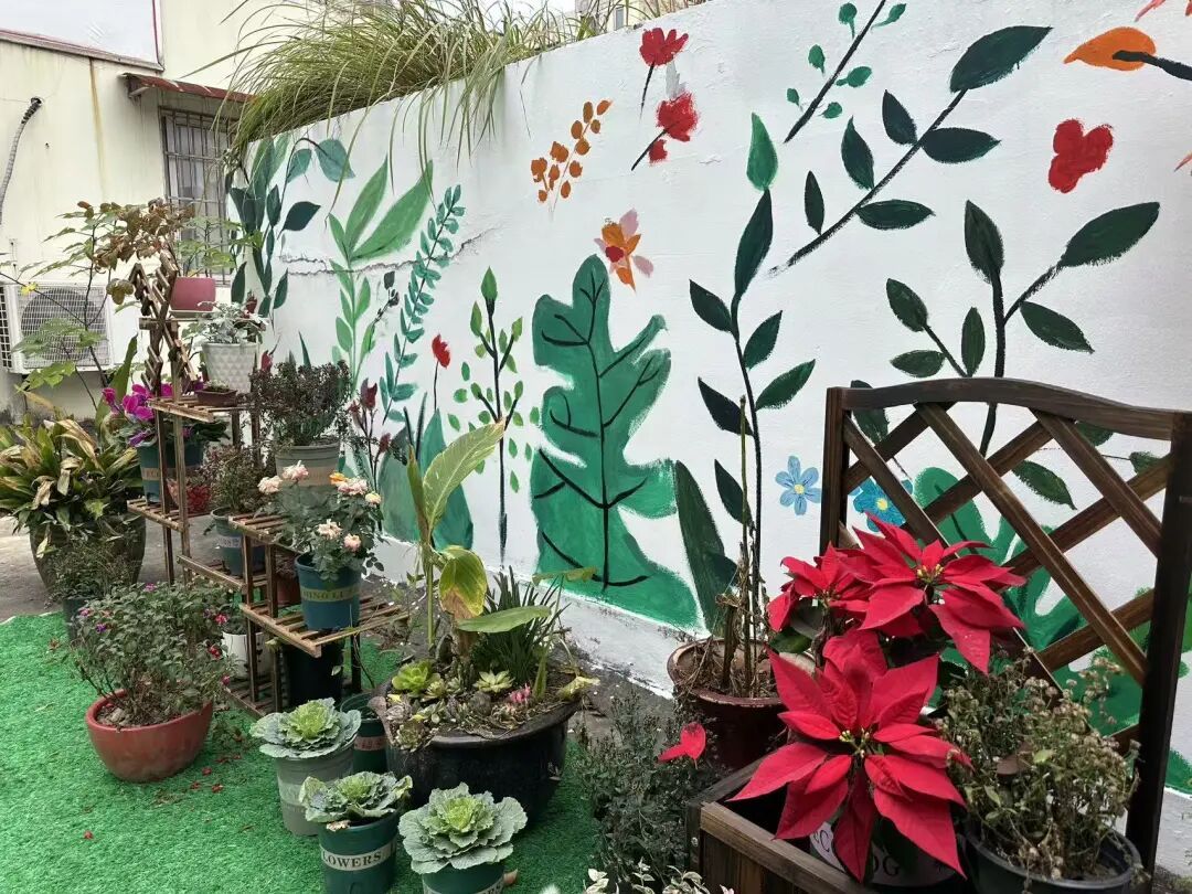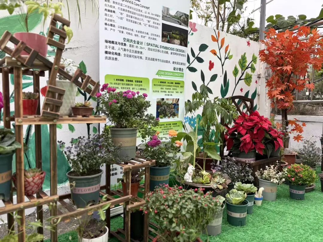 结合这些需求,学生们脑洞大开,提出了“可移动”的核心创意——“移趣小园”的名字也由此而来。“移”是巧思,用盆植和模块化花架,让花园能灵活调整布局。“趣”是心意,选址在老年活动室前,精准契合老人们的活动需求。为了降低成本,社区还发起了“旧物捐一捐,花园美一圈”活动,居民们纷纷捐出家里闲置的花盆,富赞物业也为项目捐赠了2000元资金,让这个“小而美”的项目有了落地的底气。