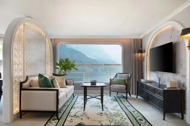 · 大使套房:40平方米,位于五层瞿塘甲板,入住者可前往专属的丝绒酒廊享用酒水和精致小食。
