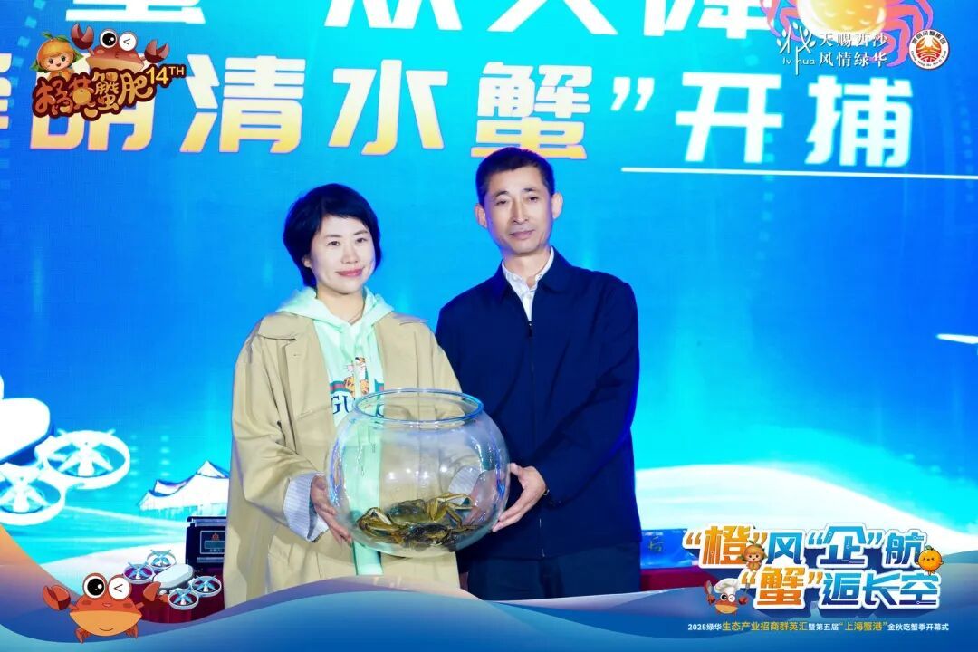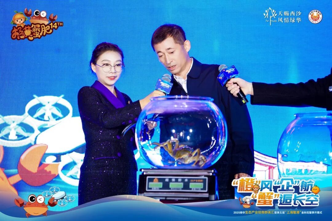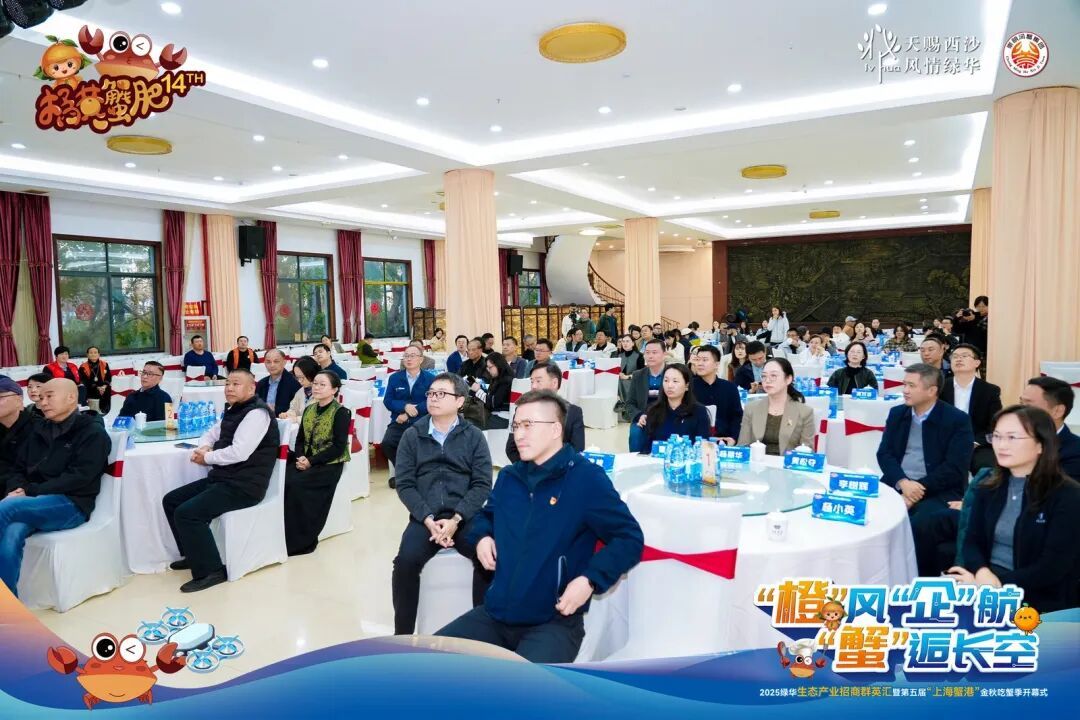 秋风起,蟹脚痒,崇明的蟹塘迎来了最热闹的丰收季。11月13日,“橙”风“企”航,“蟹”逅长空——2025绿华生态产业招商群英汇暨第五届“上海蟹港”金秋吃蟹季活动在绿华镇西来农庄举行。