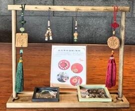 宋锦香包(川沙七灶美术馆):宋锦的纹样,似江南的细雨,又似沪上的繁华。一针一线,皆是手作的温情;流苏轻扬,带着淡淡的香气,系上它,你就拥有了沪派的细腻与江南的雅致。