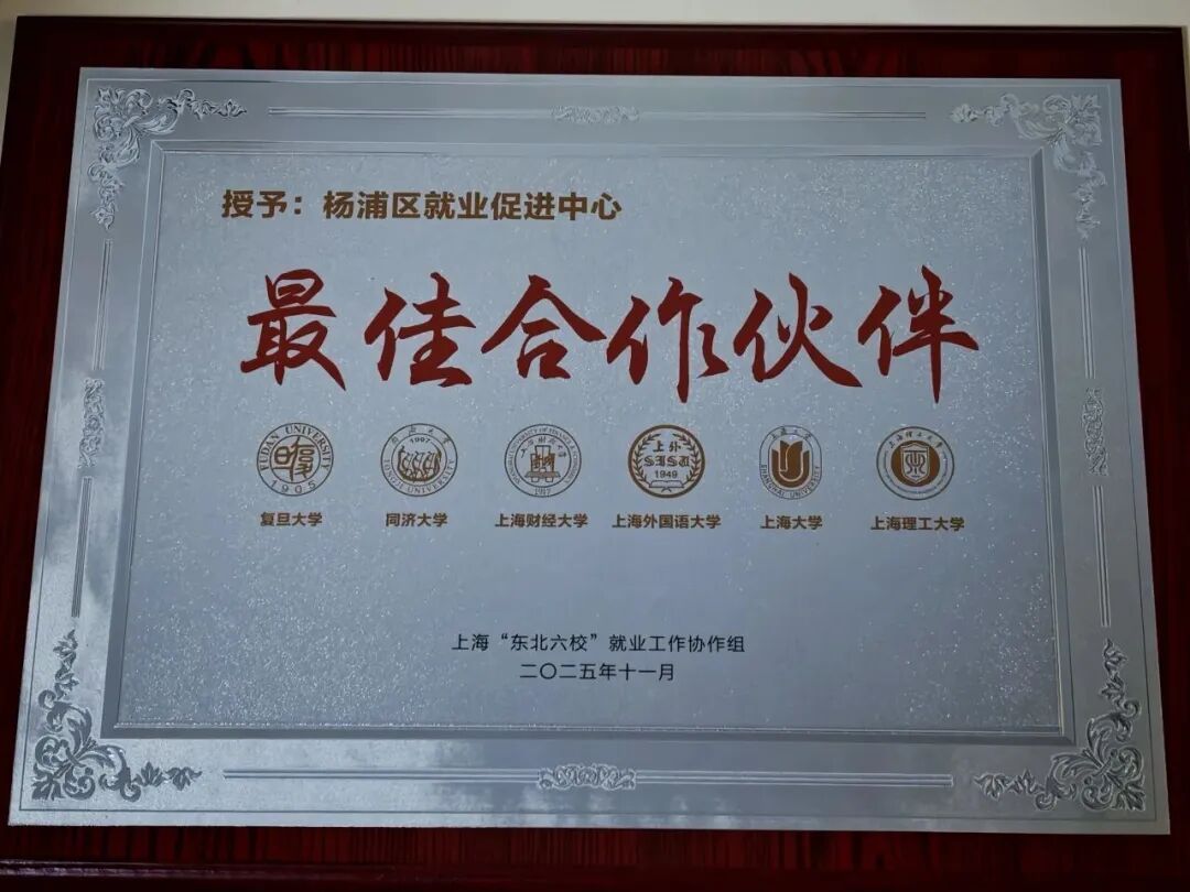 值得一提的是,杨浦区就业促进中心在仪式上被授予“最佳合作伙伴”称号。这既是对该中心长期以来深耕大学生就业服务工作、有效连接高校与企业的充分肯定,更是校地合作迈向更深层次、更广领域的新起点。“下一步,我们将进一步激活‘区校大学生就业创业联盟’的协同联动效应,整合优势资源,构建更为紧密、高效的就业服务共同体,为区域人才建设打下坚实基础。”区就业促进中心相关负责人表示。