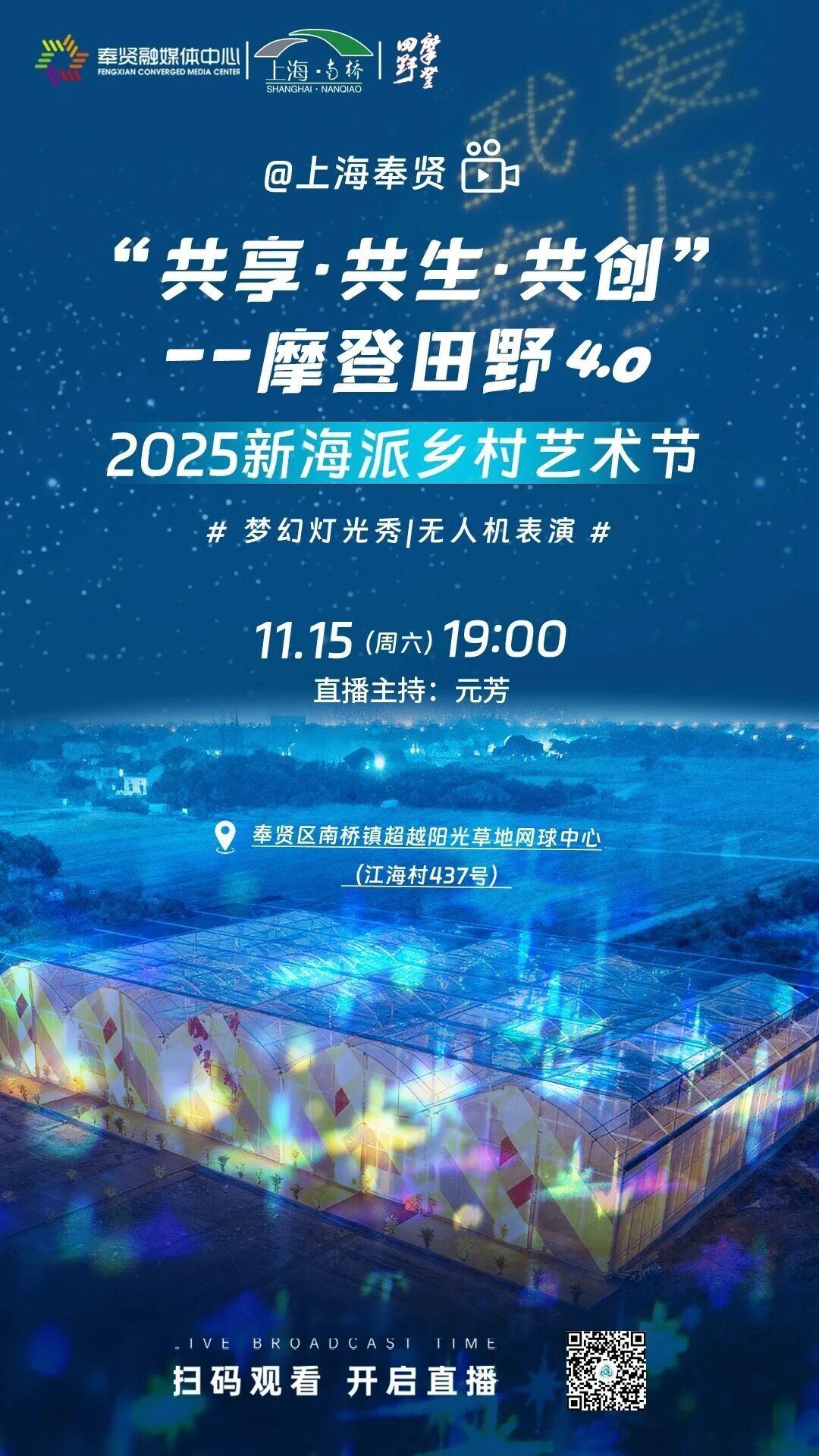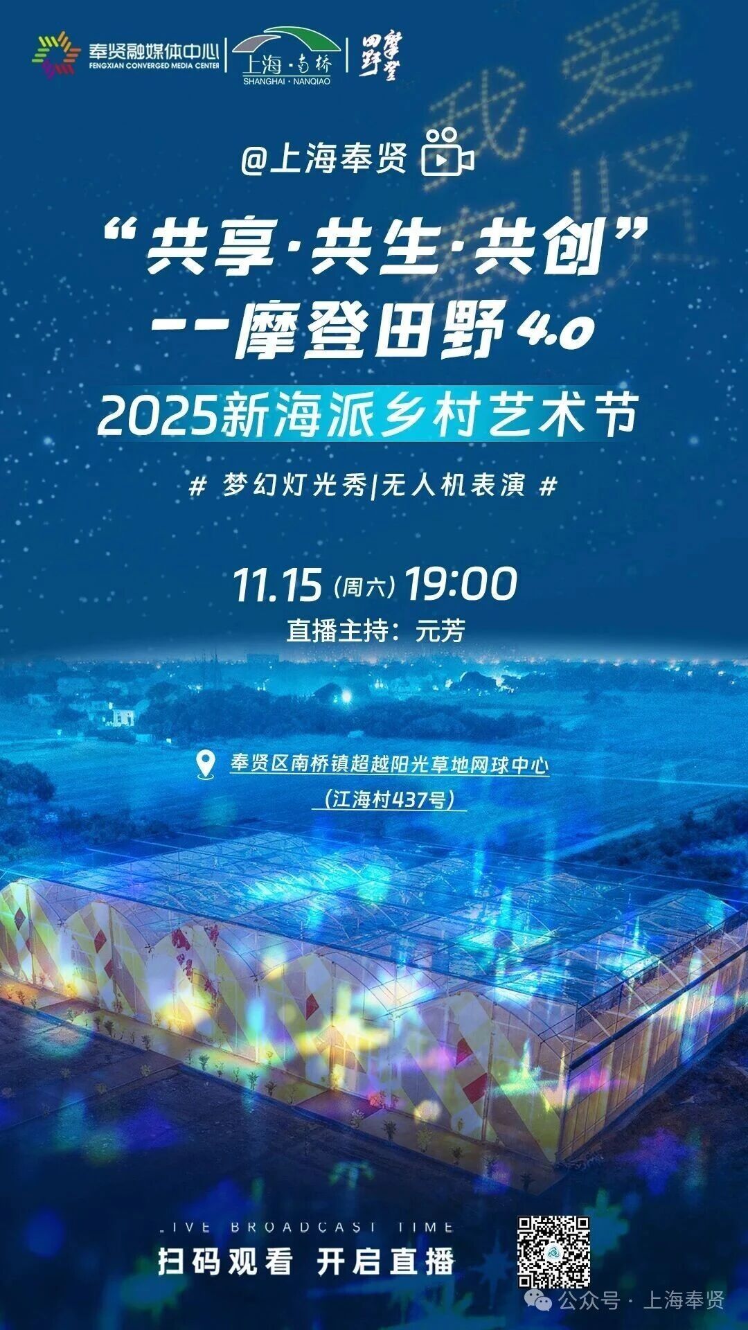 直播内容:摩登田野2025新海派乡村艺术节梦幻灯光秀➕无人机表演