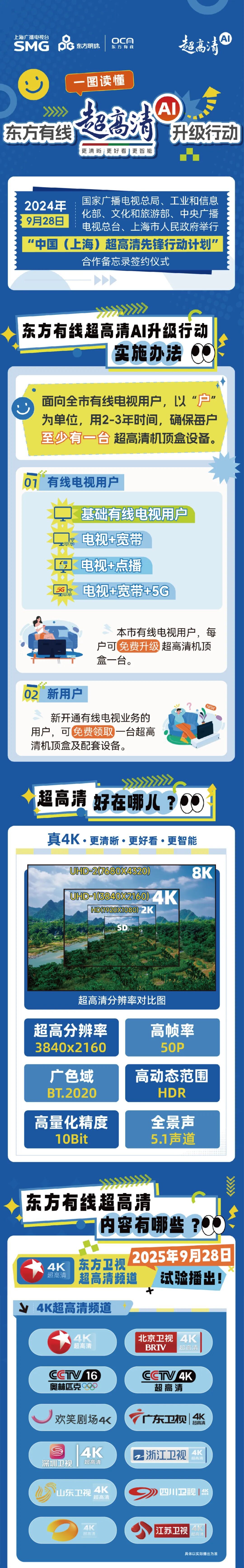为推进超高清视听产业高质量发展,让闵行区居民尽享更清晰、更智能的视听体验,东方有线“超高清AI升级行动”已正式启动!