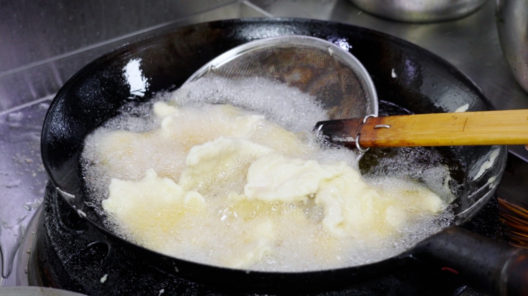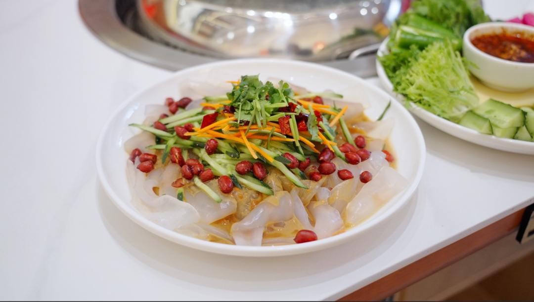 大拉皮是现拌的,宽宽的拉皮爽滑劲道,浇上店家自己调的麻酱,再撒点黄瓜丝、胡萝卜丝,拌匀了一口下去,香得直眯眼。