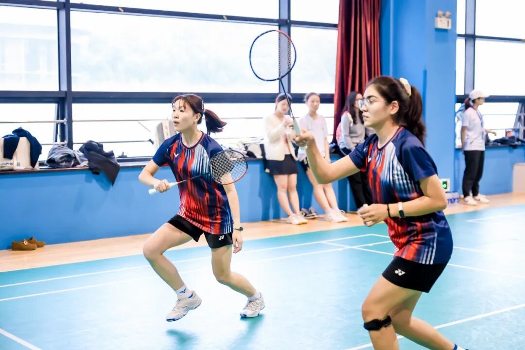 比赛现场气氛热烈,清脆的击球声与观众的喝彩声此起彼伏。选手们眼神专注、步伐敏捷,每一次精彩的扣杀、吊球与扑救,都引来看台阵阵掌声。场边,各校啦啦队挥舞校旗、高举标语,将赛场渲染成一片青春激荡的海洋。