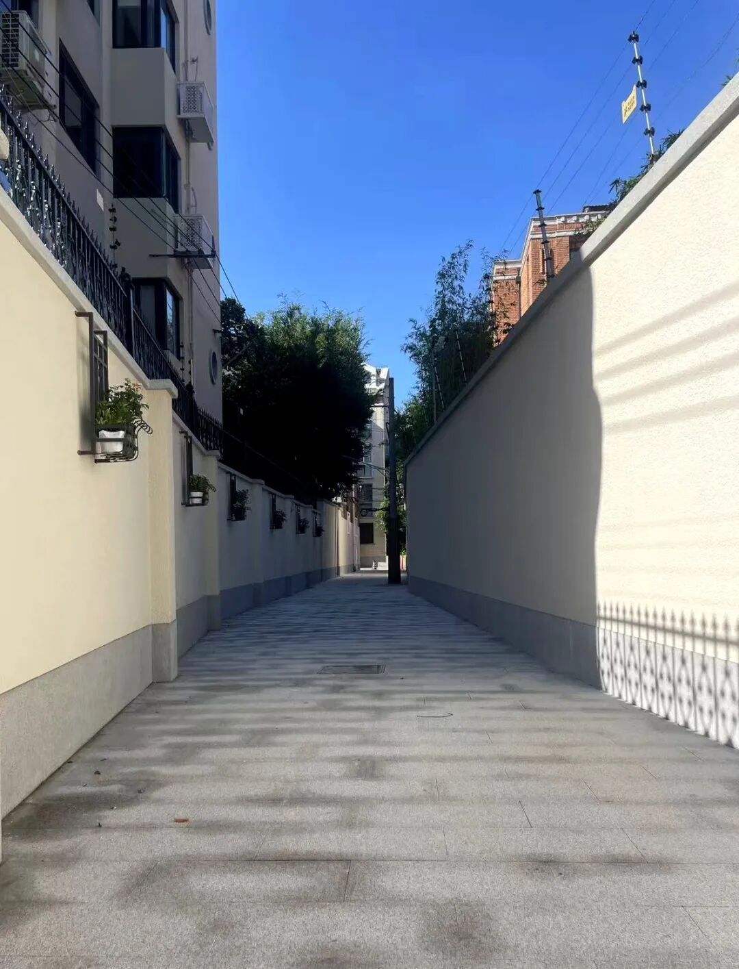 刚走进泰安路10弄,记者便感受到了明显的变化——原本斑驳脱落的墙面不见了,取而代之的是统一压毛处理的墙面,米白色的底色搭配墙角点缀的绿色盆栽,显得清爽又温馨。