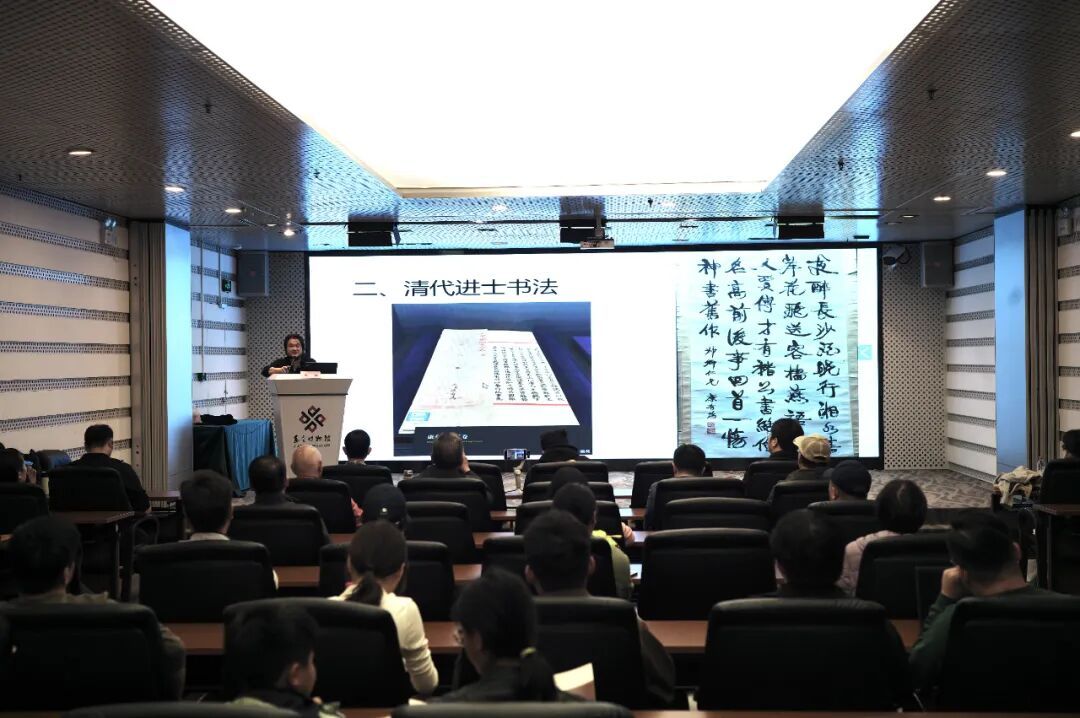 “状元书法是‘学’与‘艺’结合的独特产物,我们知道,受到科举考试制度的影响,清朝书法往往呈现为‘馆阁体’的乌、方、光,但其实也不乏一体两为、追求个性的案例。”一个多小时的讲座中,王客将书法作品的艺术表达和历史审美变化进行了有机结合,深度探讨了清代状元书法的文化现象、艺术价值及其与科举制度的深层关联。