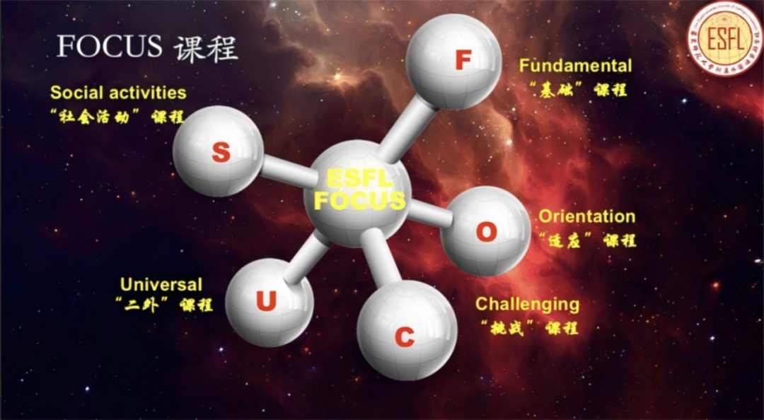 FOCUS在英文里的含义是“焦点、聚焦”。在华外实验的语境里,它有两层指向:一是聚焦课堂,把国家课程这块“基本盘”夯实;二是聚焦学生的全面发展,在此基础上做出有层次、有梯度的延展。学校用F、O、C、U、S五个字母,为学生画出了一张从基础到挑战、从校园走向世界的课程地图。