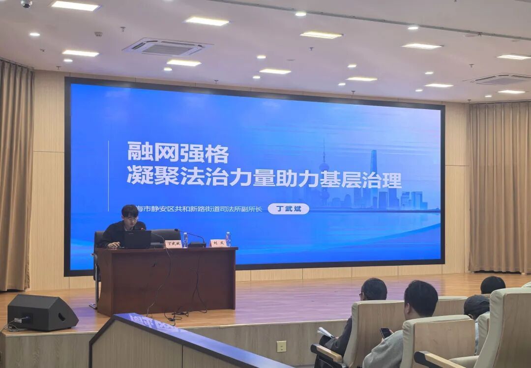 培训还邀请共和新路街道司法所副所长丁武斌就司法所基层法治建设工作进行了经验分享。他以“融网强格,凝聚法治力量助力基层治理”为题,立足街道治理实践,生动讲述了新时代司法所法治工作创新与基层网格治理探索实践的交融互动、双向赋能,为基层治理持续注入法治动力。