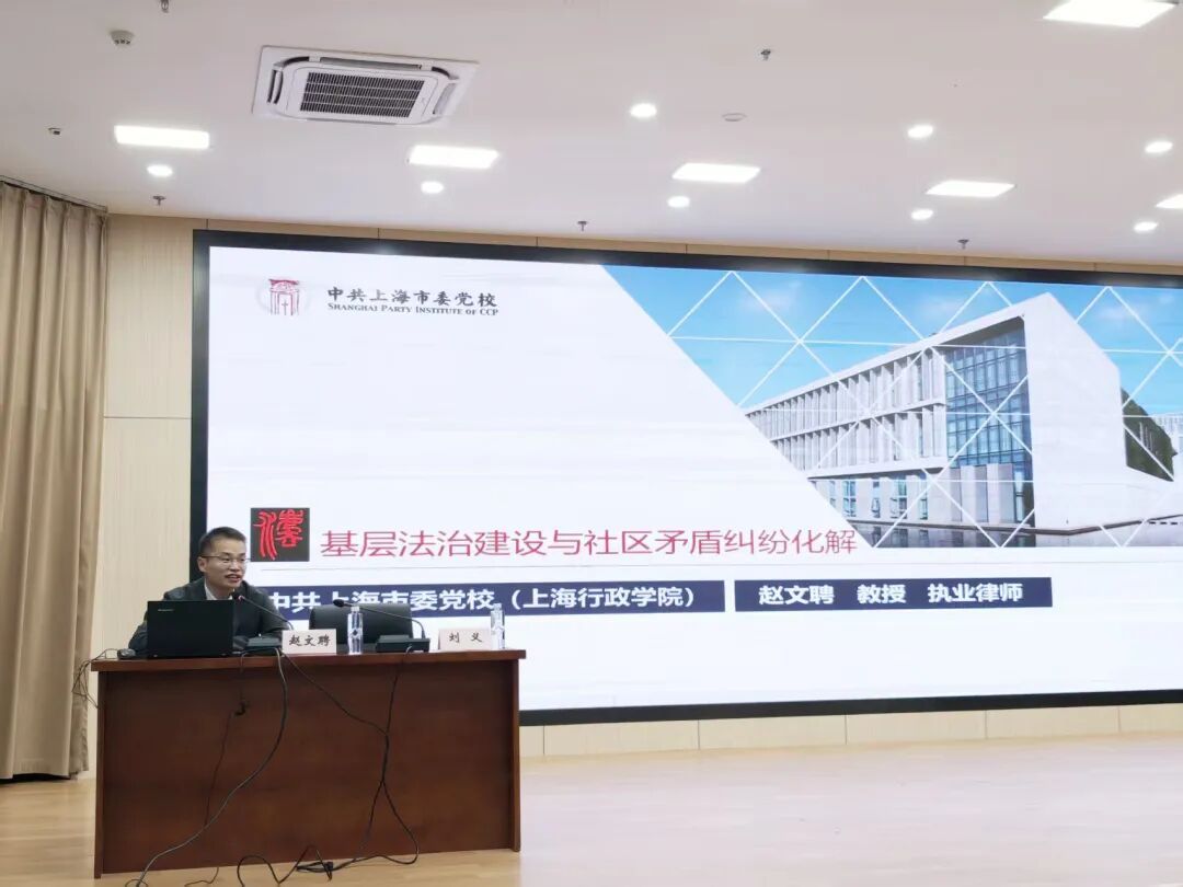 本次培训特邀中共上海市委党校赵文聘教授授课。赵文聘教授聚焦“基层法治建设与社区矛盾纠纷化解”主题,通过引入停车、物业、业委会等多个典型治理案例,从专业角度深入分析基层治理难题破解法治“良方”,为有效化解基层矛盾纠纷、大力推进依法治理工作提供了有力指引。