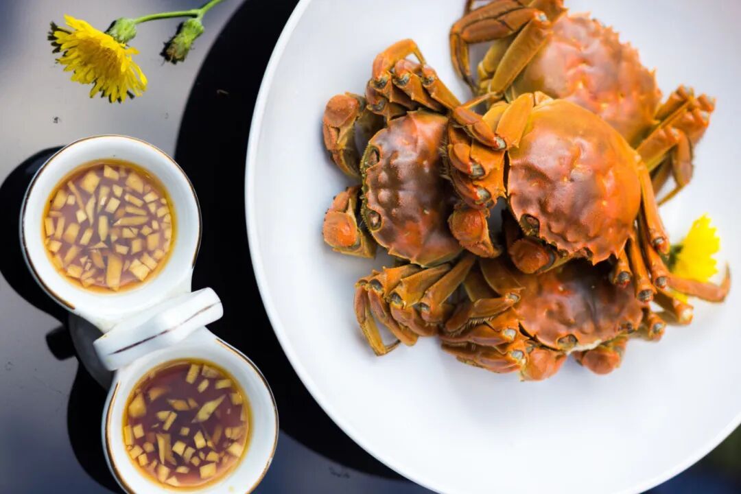 此外,建议在吃大闸蟹时蘸料调味品要加生姜,以祛除蟹之寒性。