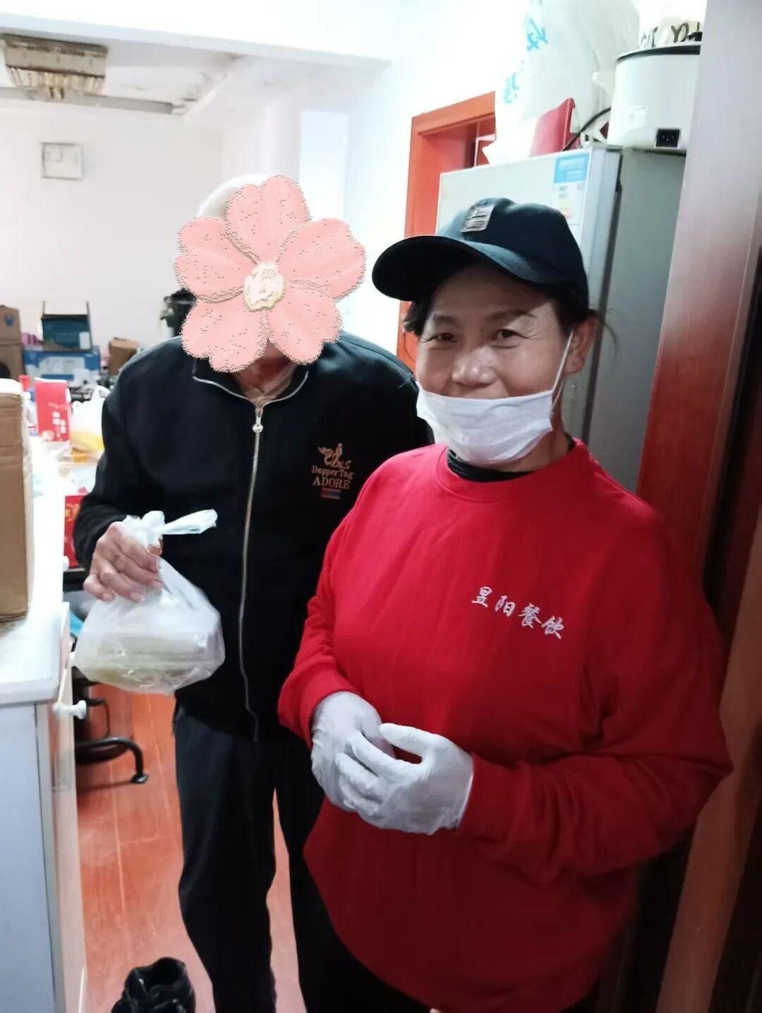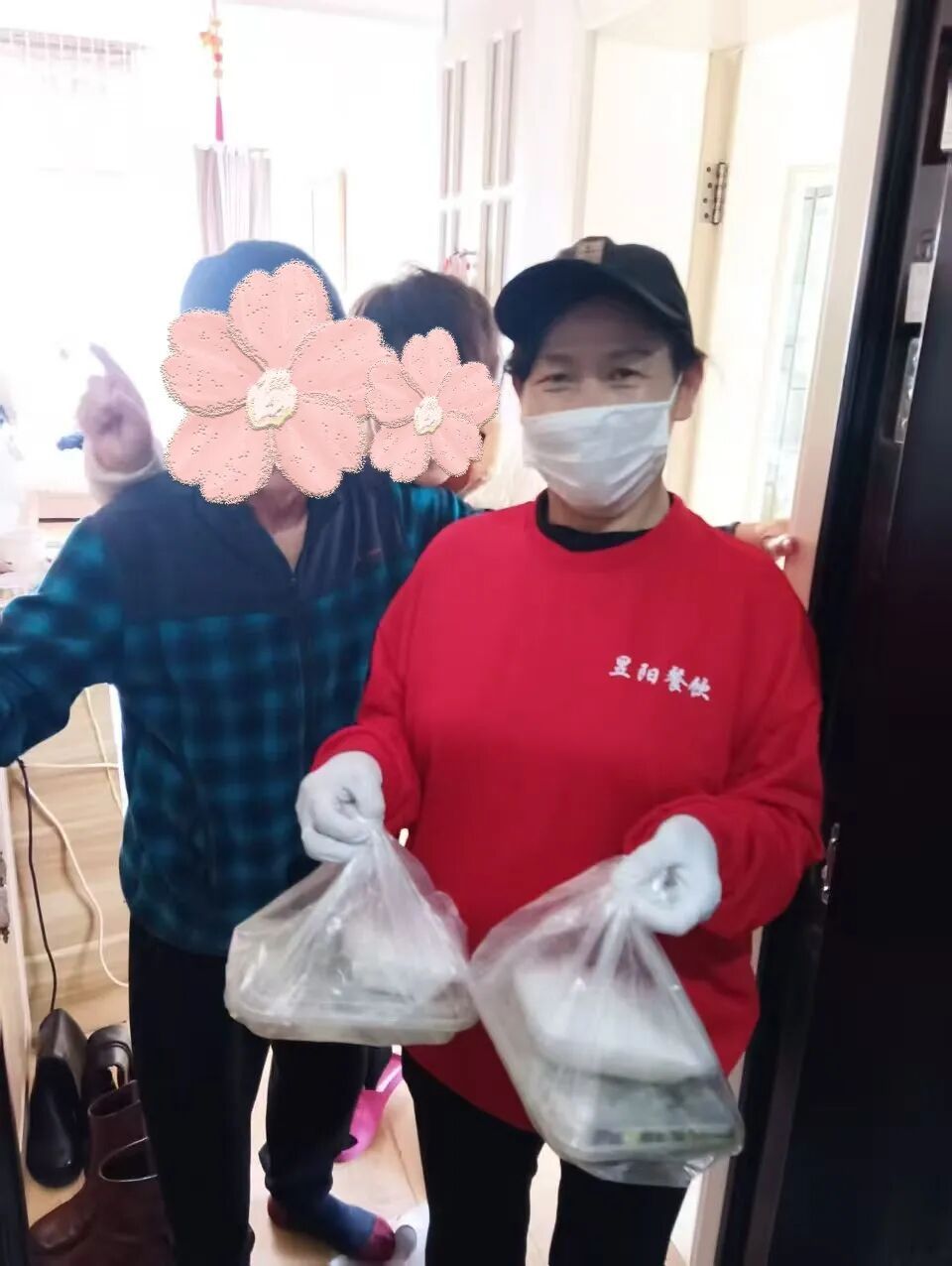 骑手们把餐盒送到老人家中,老人们笑容满面,纷纷夸赞社区贴心、感谢政府的关爱。